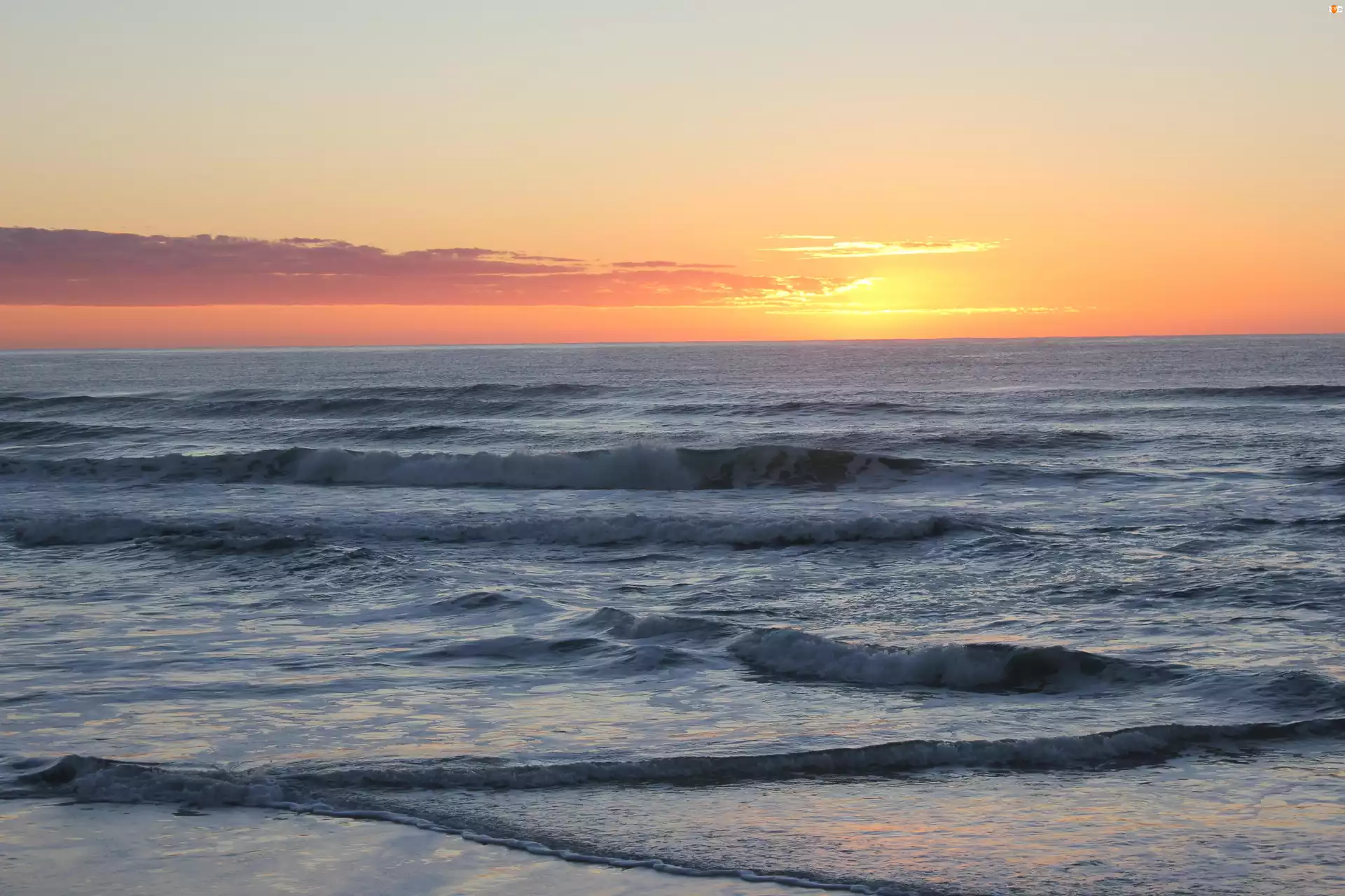 Zachód Słońca, Woda, Morze, Fale