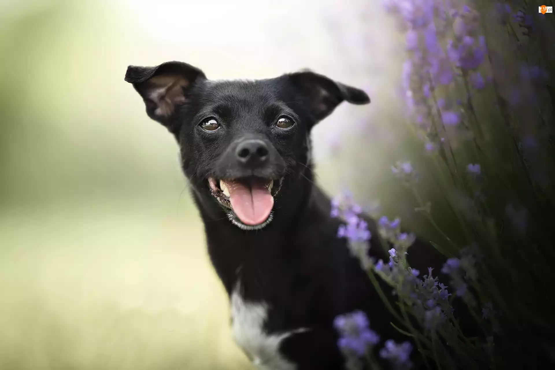 Zadowolony czarny pies