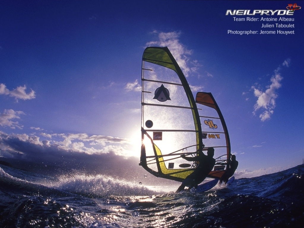 żagiel , fala, Windsurfing, niebo, deska, morze