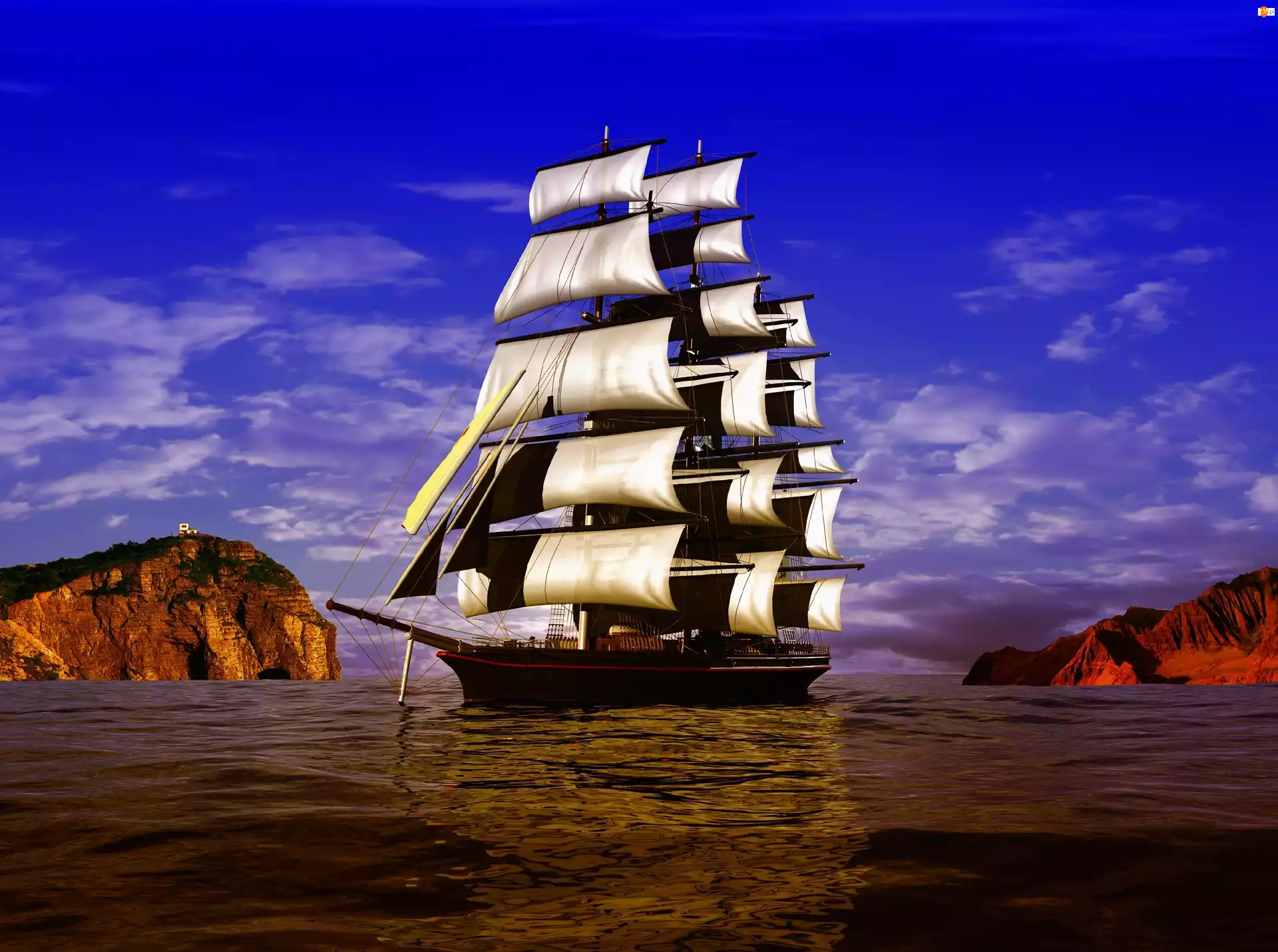 Żaglowiec, Morze, Skały