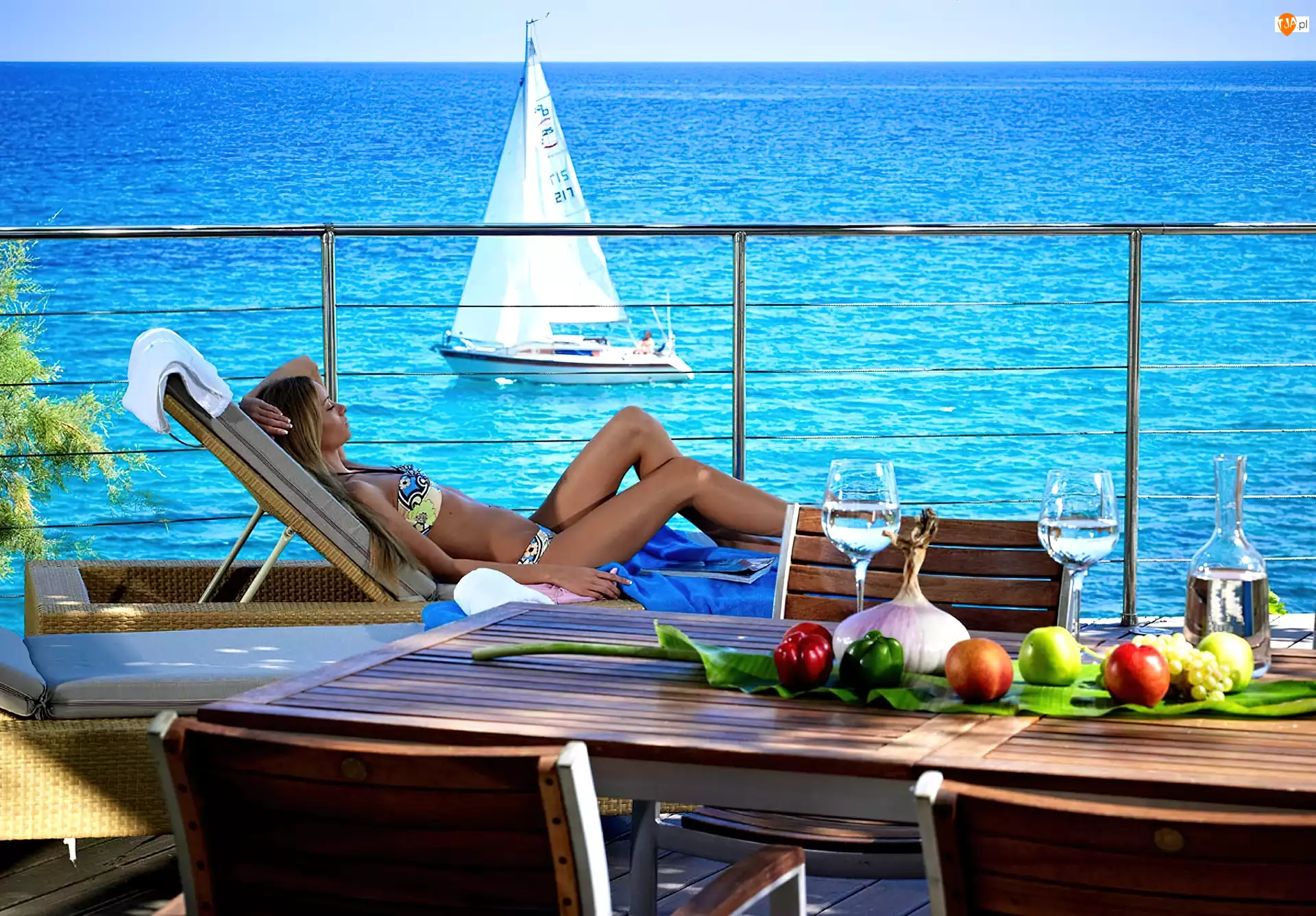 Żaglówka, Dziewczyna, Taras, Opalanie, Morze