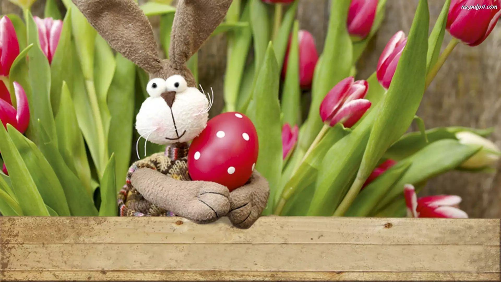 Zajączek, Wielkanoc, Jajko, Tulipany