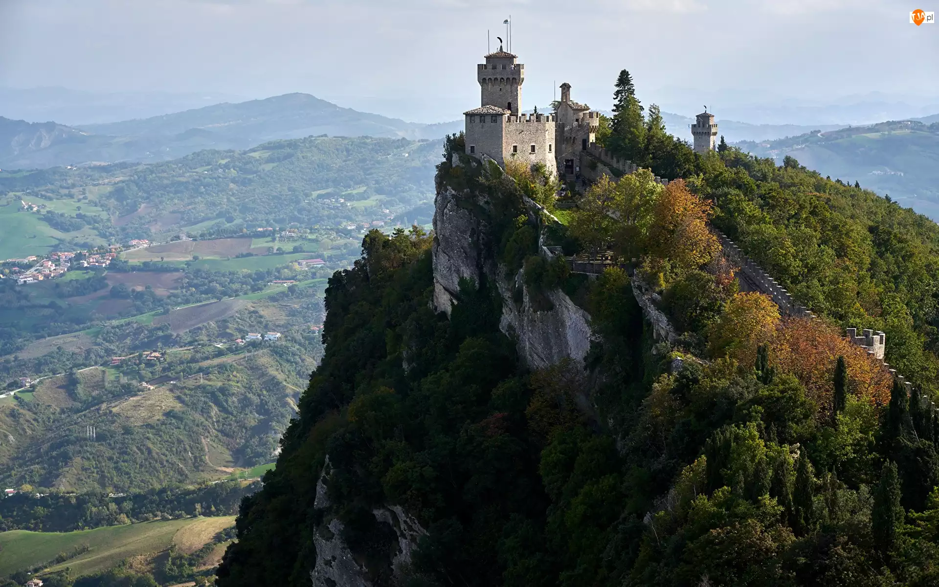 Zamek De La Fratta, Panorama, Góra Titano, San Marino, Drzewa