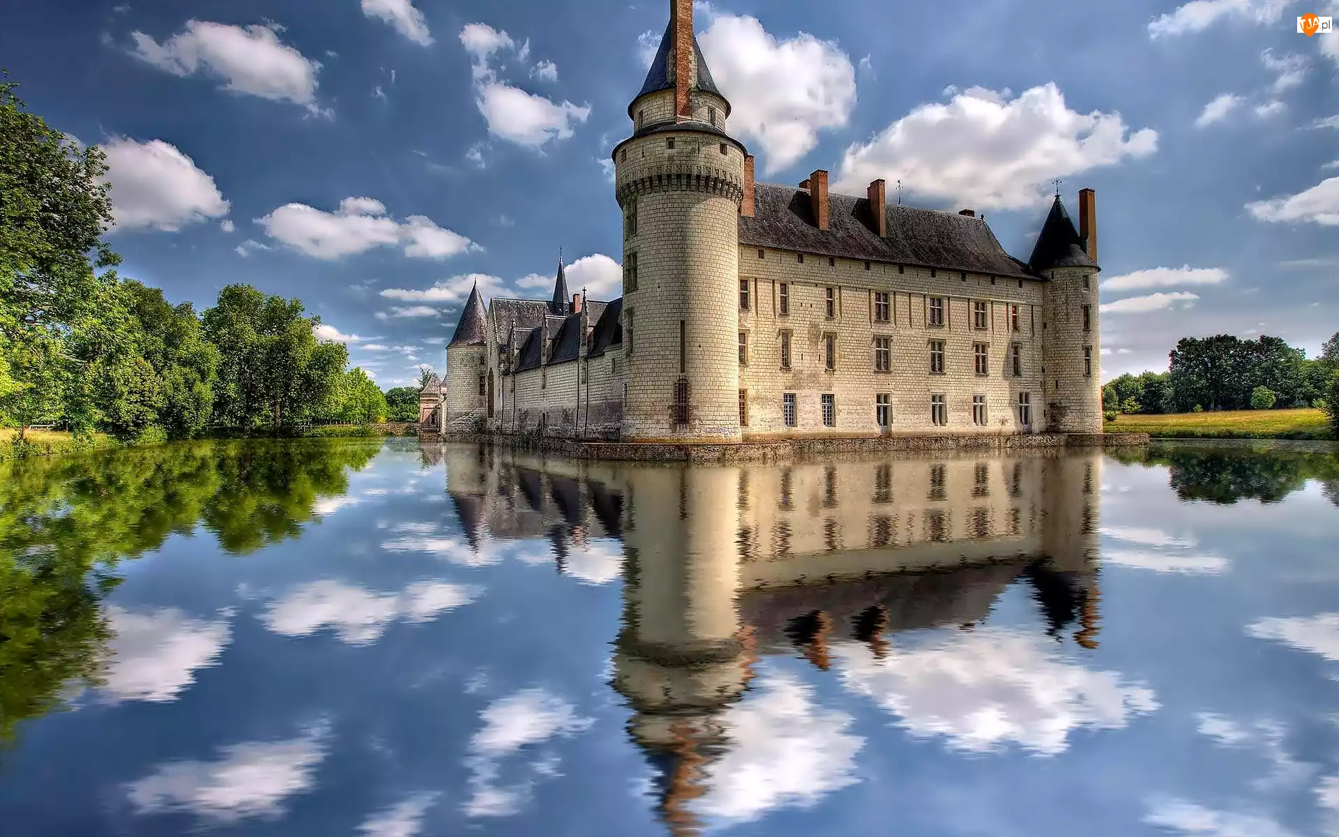 Woda, Drzewa, Zamek, Budowla, Odbicie