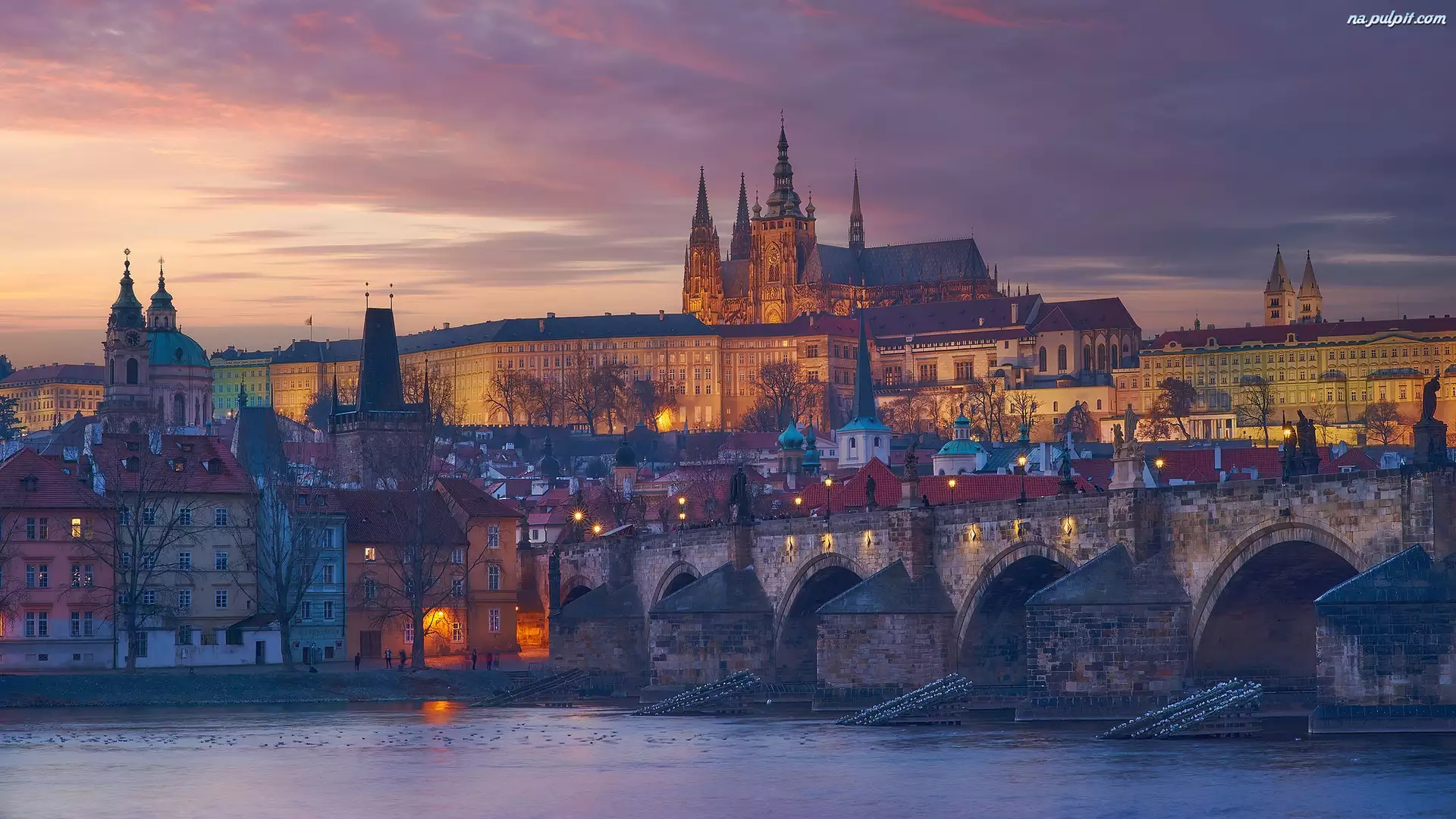 Most, Domy, Hradczany, Czechy, Zamek Praski, Praga