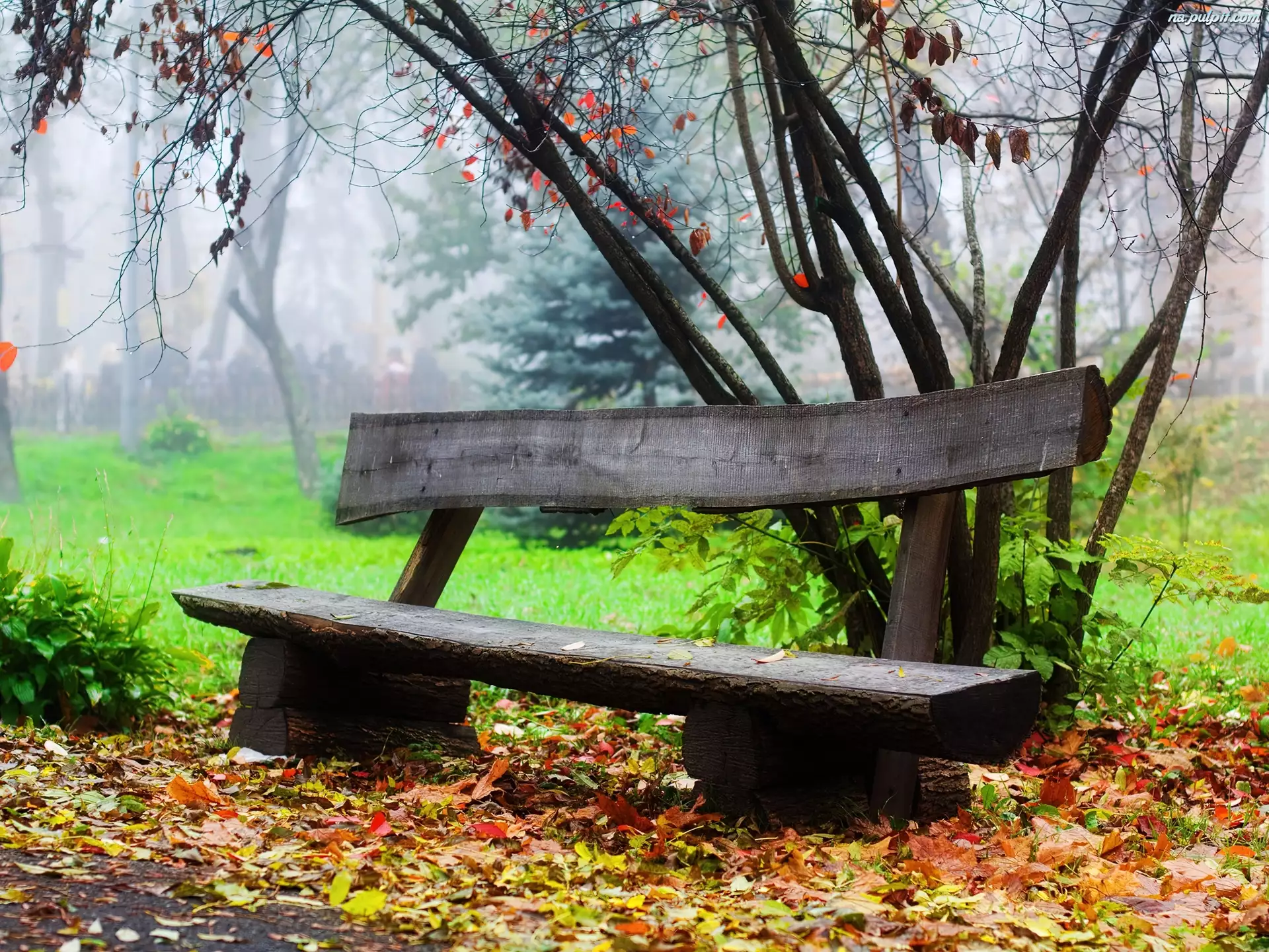Zamglony, Ławeczka, Jesienny, Park