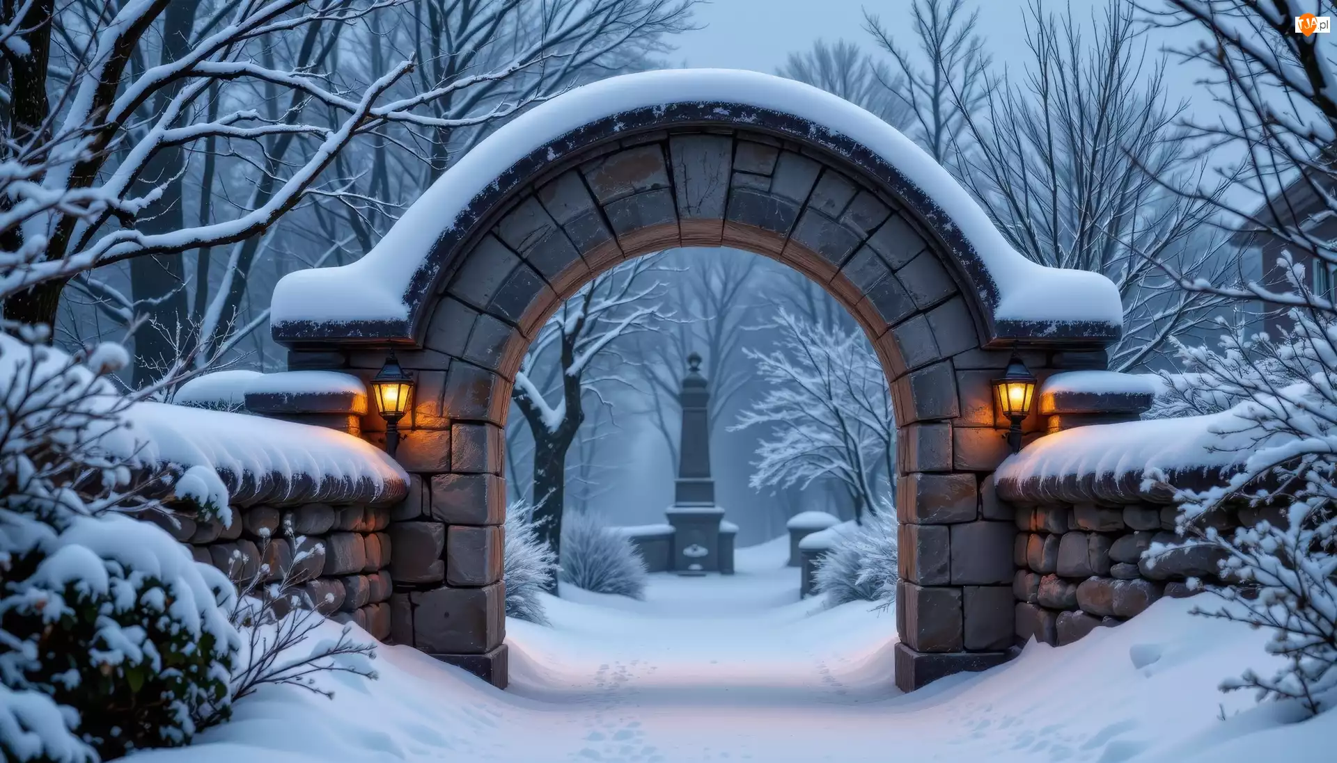 Kamienny, Zima, Latarnie, Zima, Łuk, Śnieg