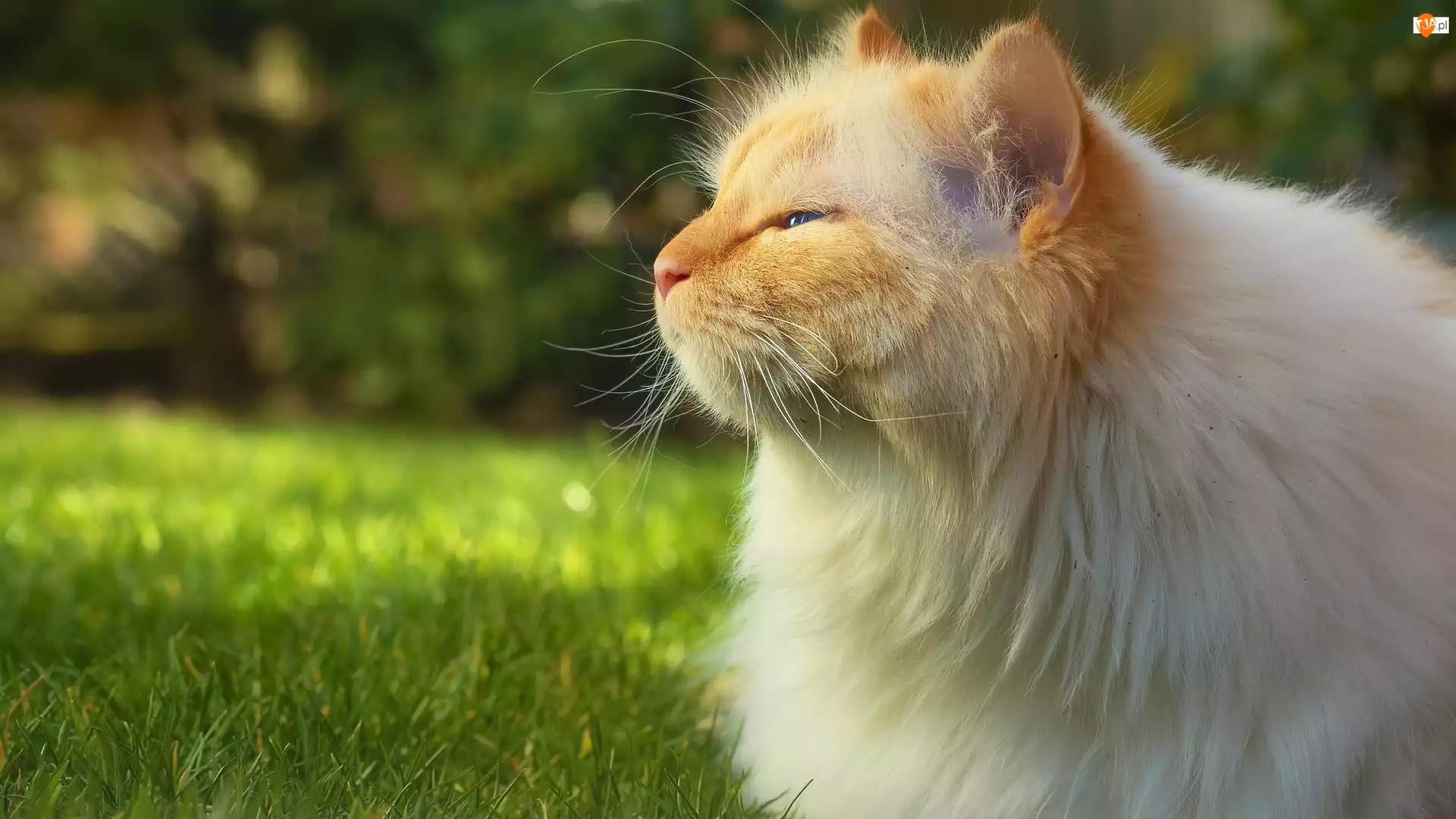 Rudy, Kot, Długowłosy, Zapatrzony, Niebieskooki