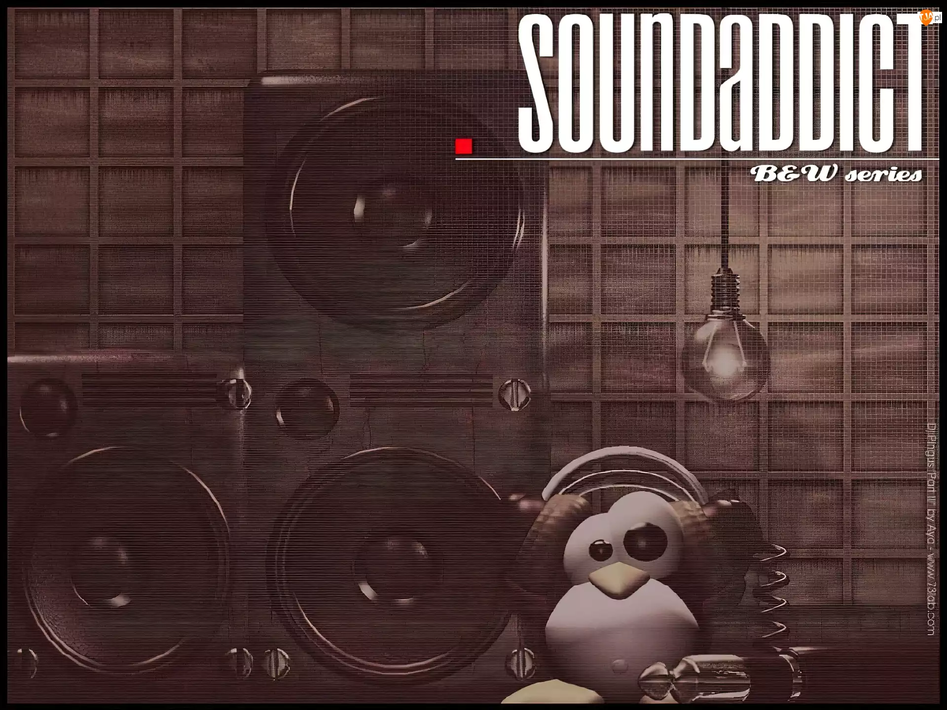 żarówka, pingwin, głośniki, grafika, słuchawk