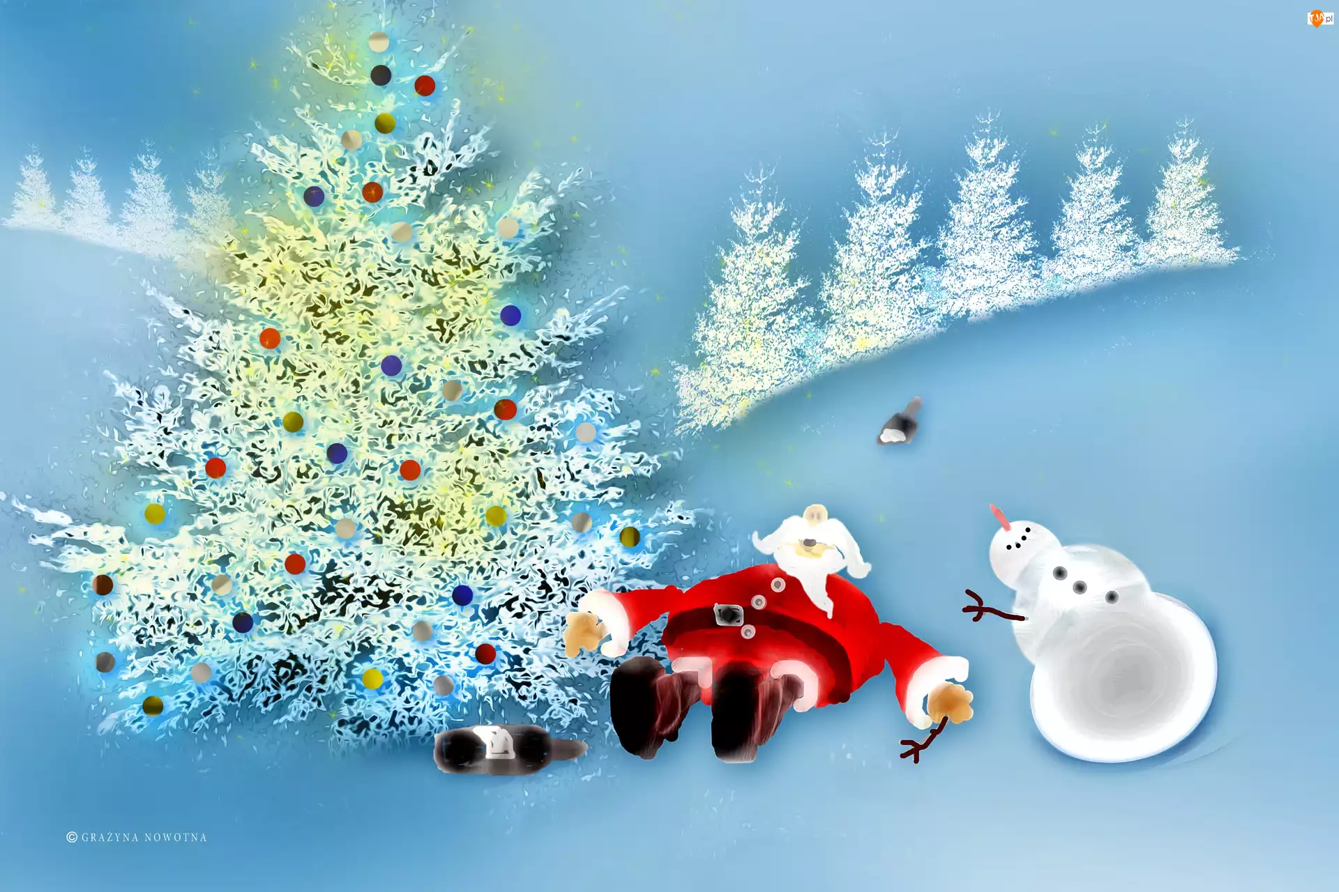 Żart, Mikołaj, Choinki, Bałwanek, Grafika