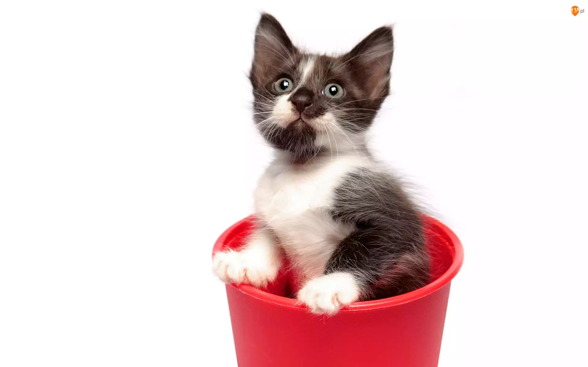 Zaskoczony, Doniczka, Kotek, Czerwona