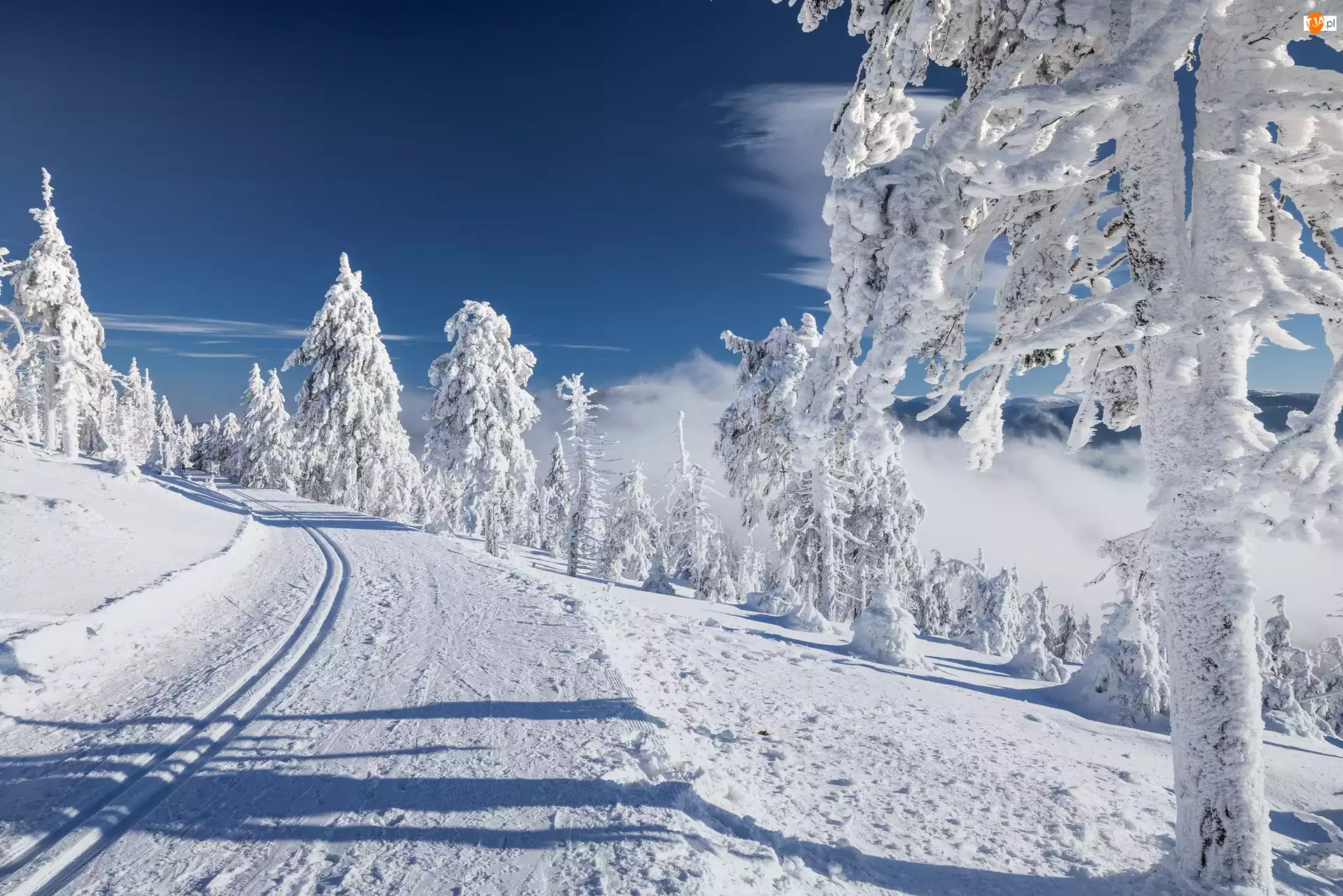 Zaśnieżone, Zima, Droga, Światło słoneczne, D