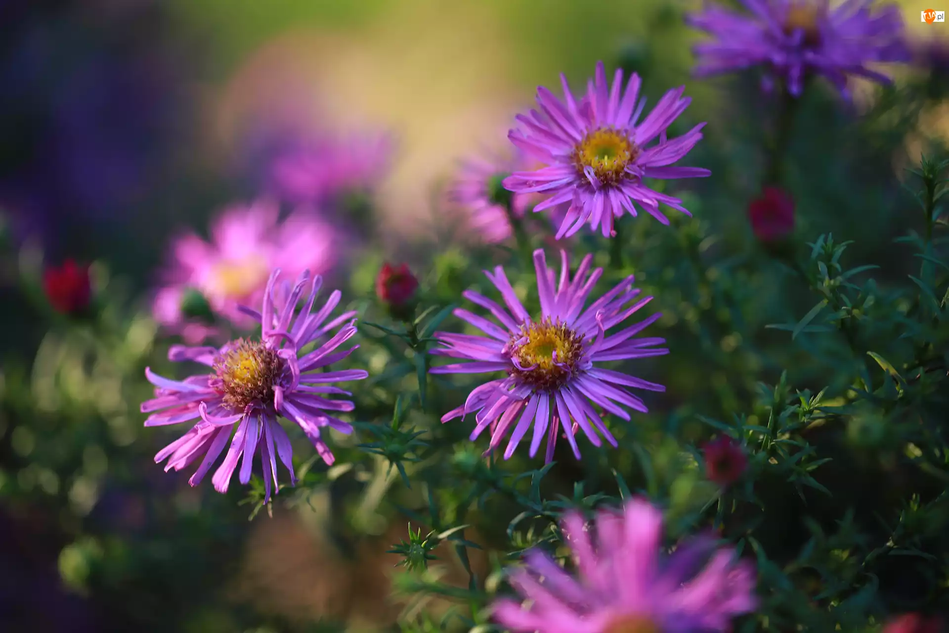 Zbliżenie, Fioletowe, Astry, Kwiaty