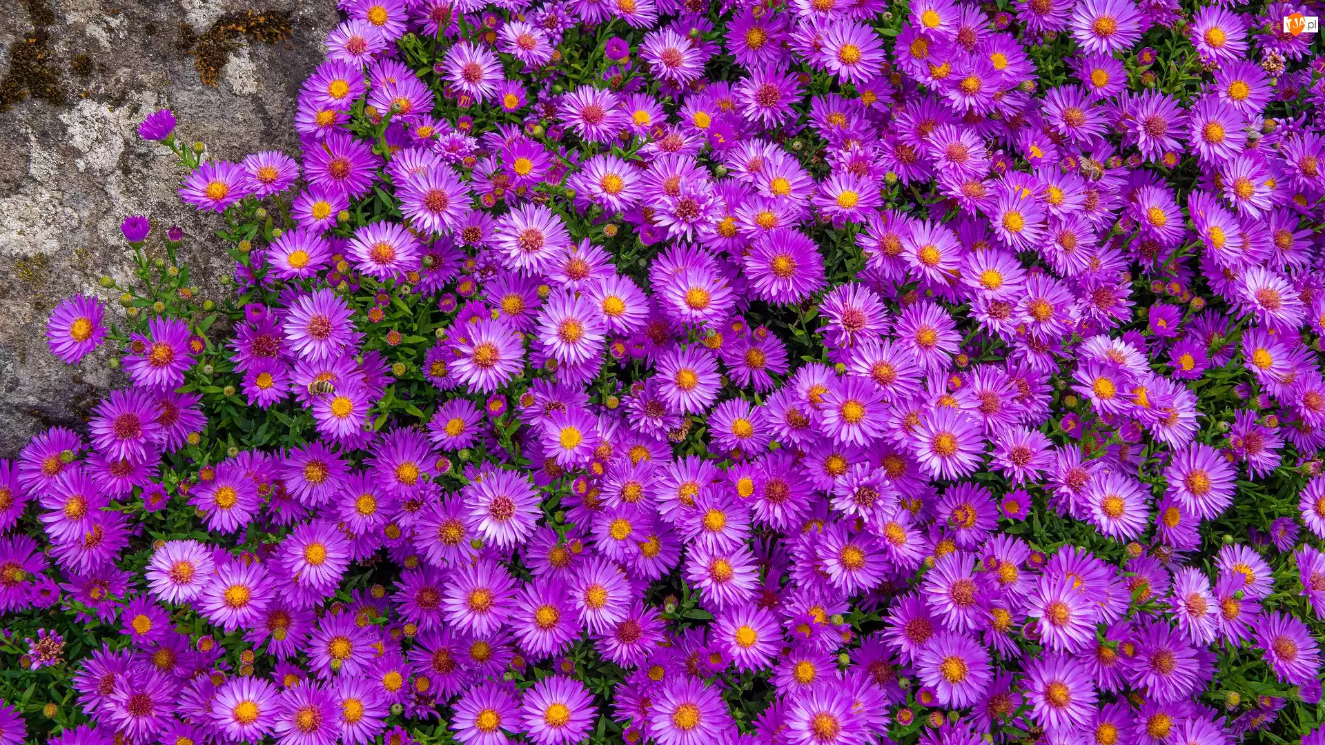 Zbliżenie, Kwiaty, Fioletowe, Astry