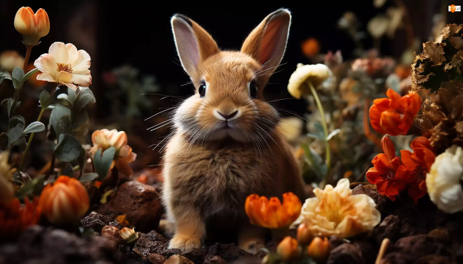 Zbliżenie, Królik, Kwiaty