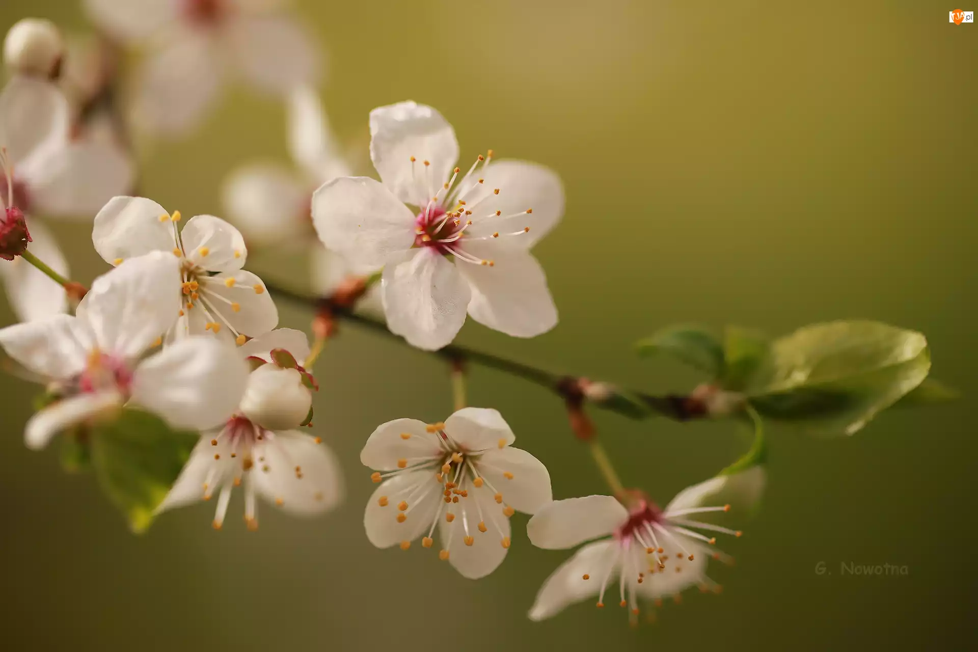 Zbliżenie, Kwiaty, Gałązka, Drzewo owocowe, Bia