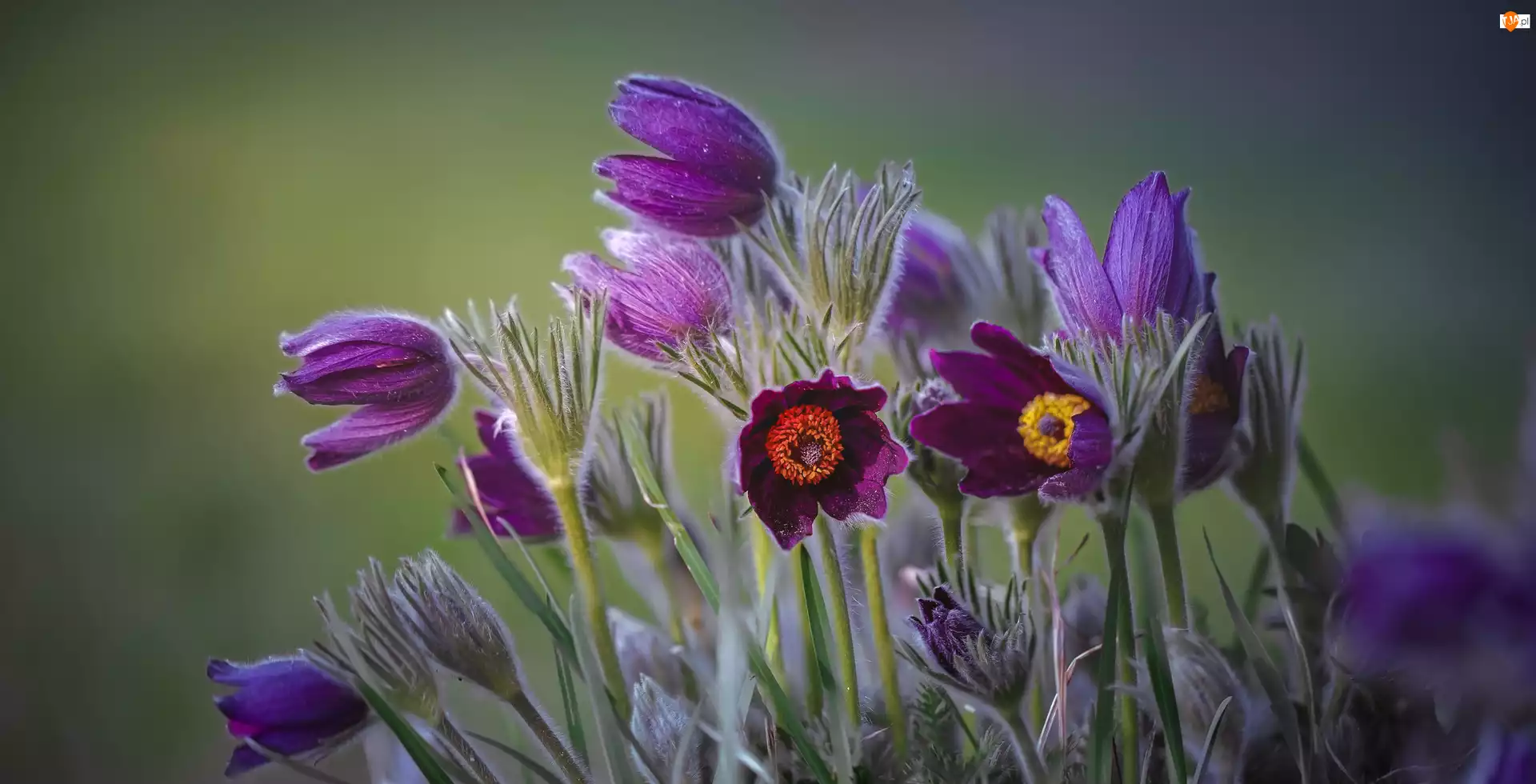 Zbliżenie, Kwiaty, Sasanki, Fioletowe