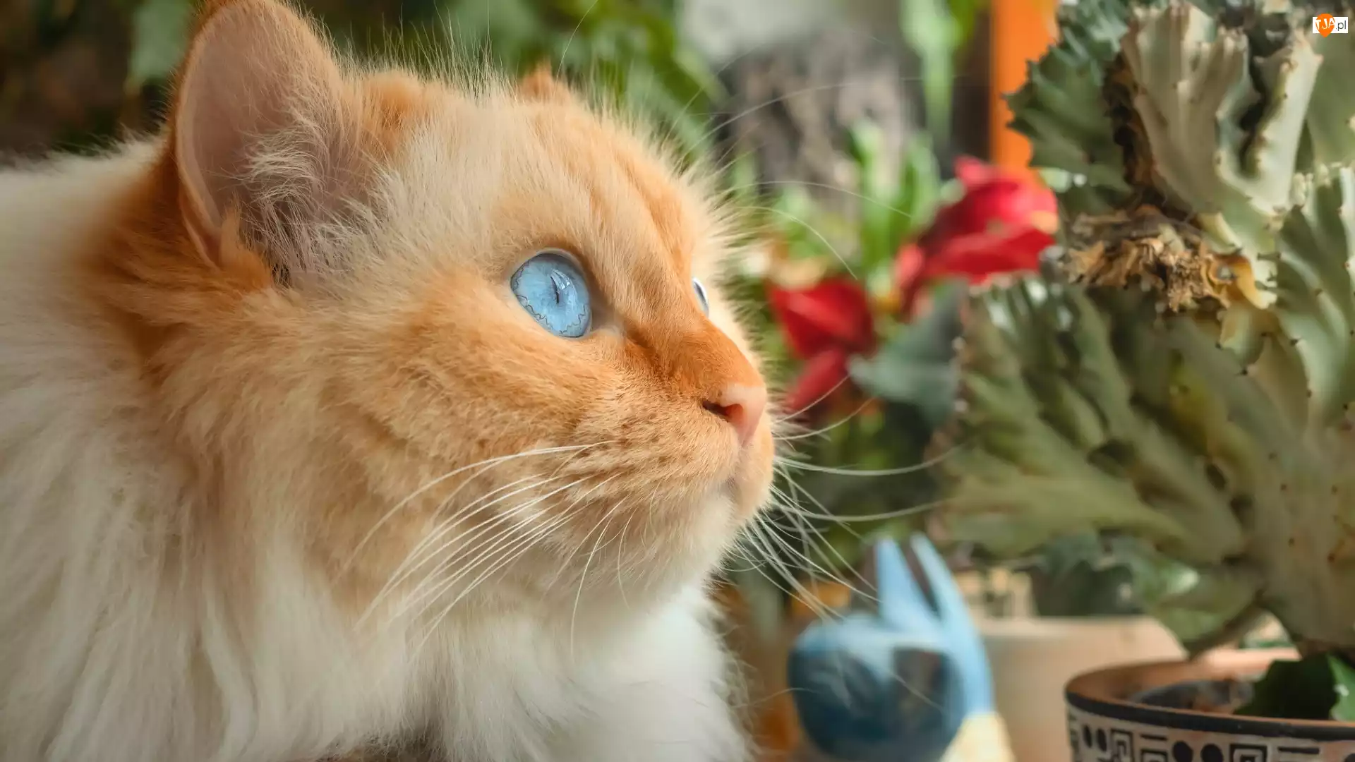 Zbliżenie, Rudowłosy, Kot, Niebieskooki