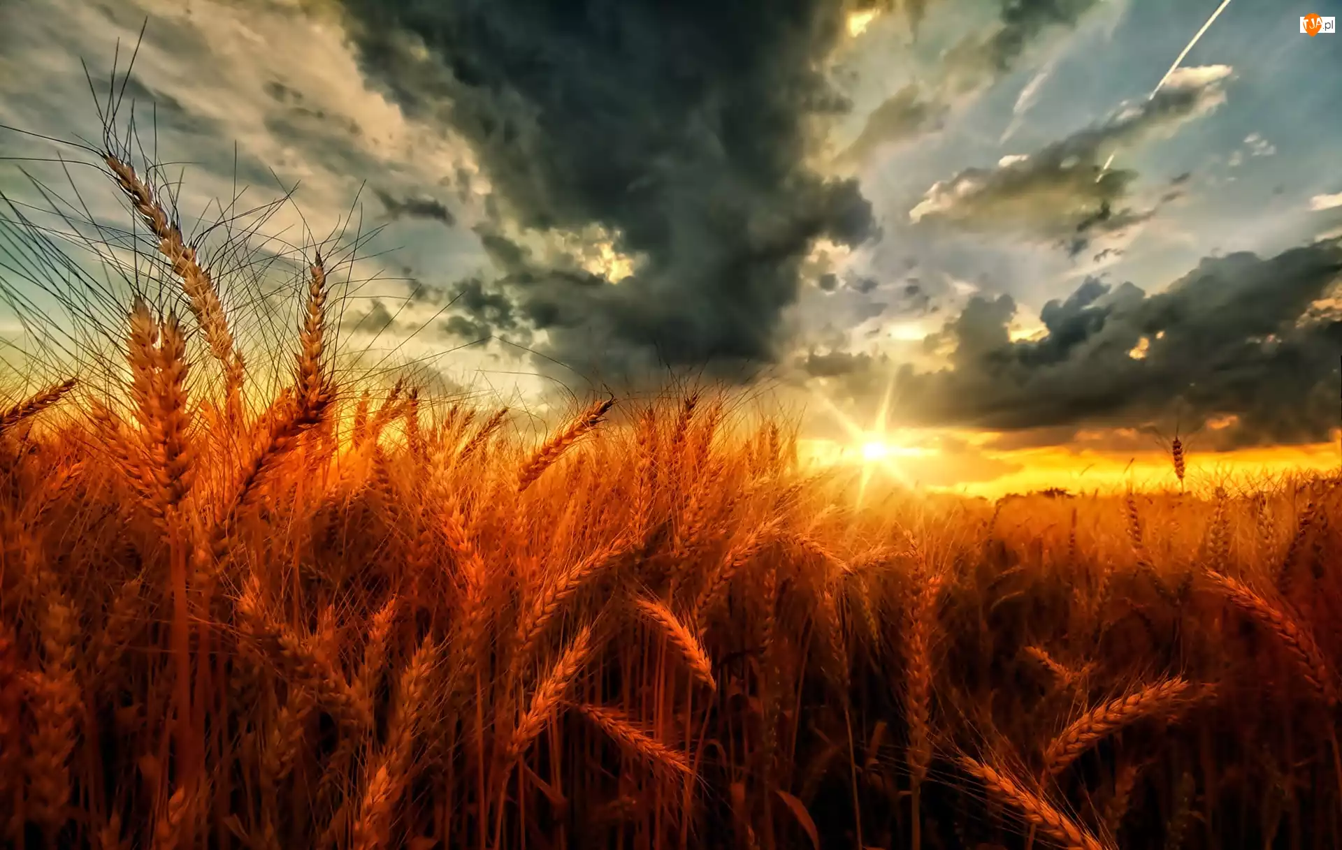 Zboże, Chmury, Kłosy, Zachód Słońca