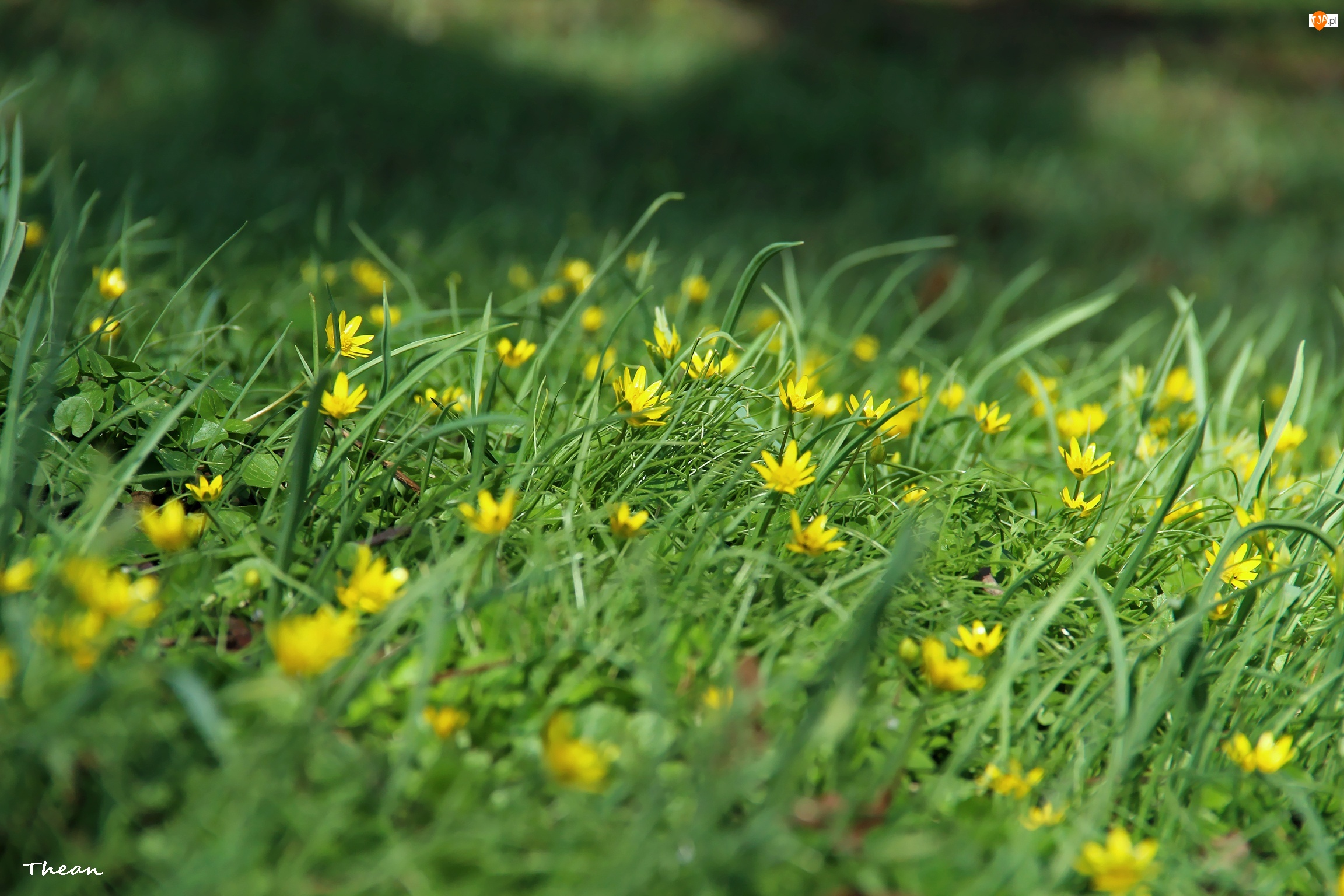 Ziarnopłon Wiosenny, Kwiaty, Trawa, Żółte