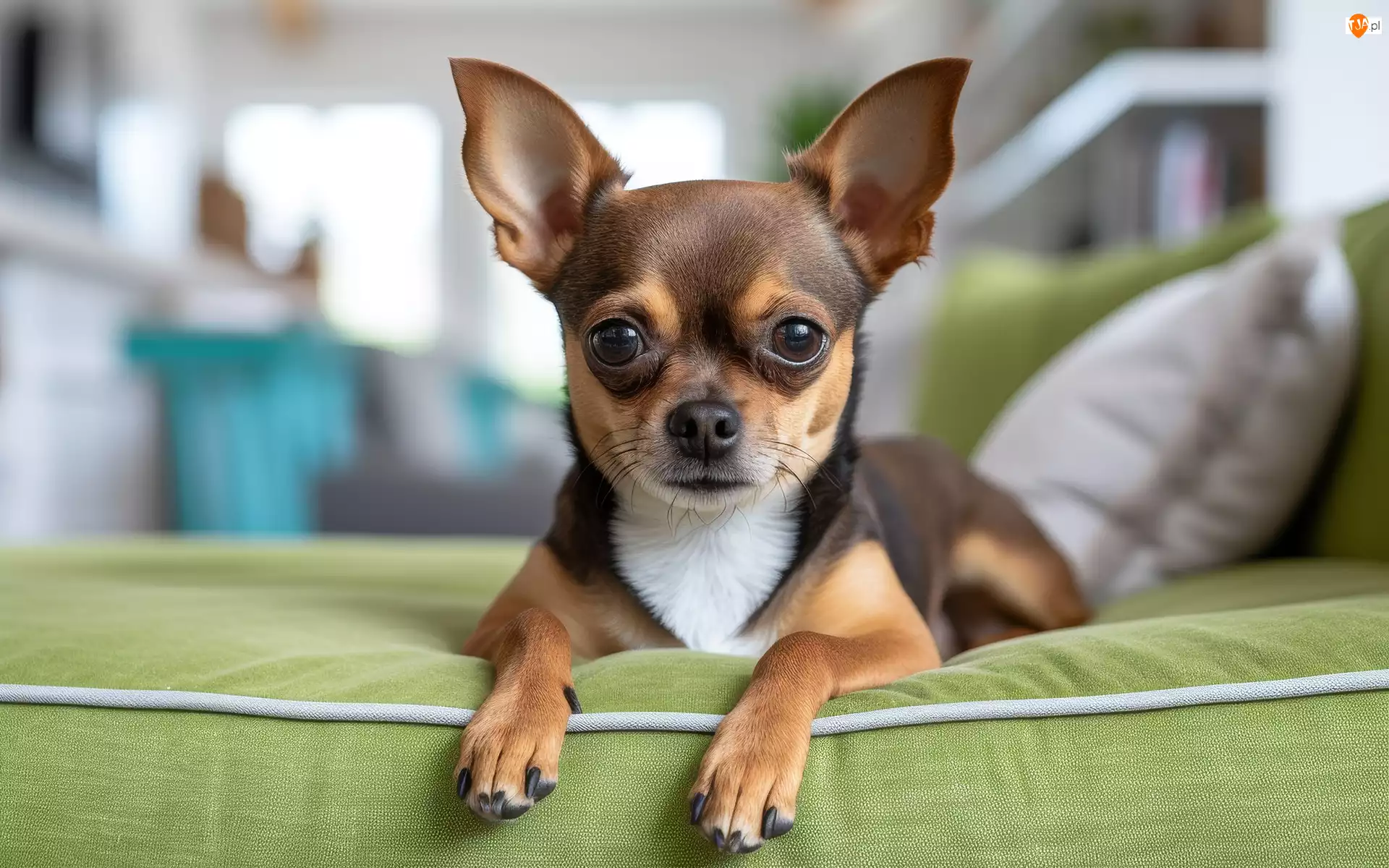 Zielona, Grafika Chihuahua krótkowłosa, Pies, Chihuahua krótkowłosa, Kanapa
