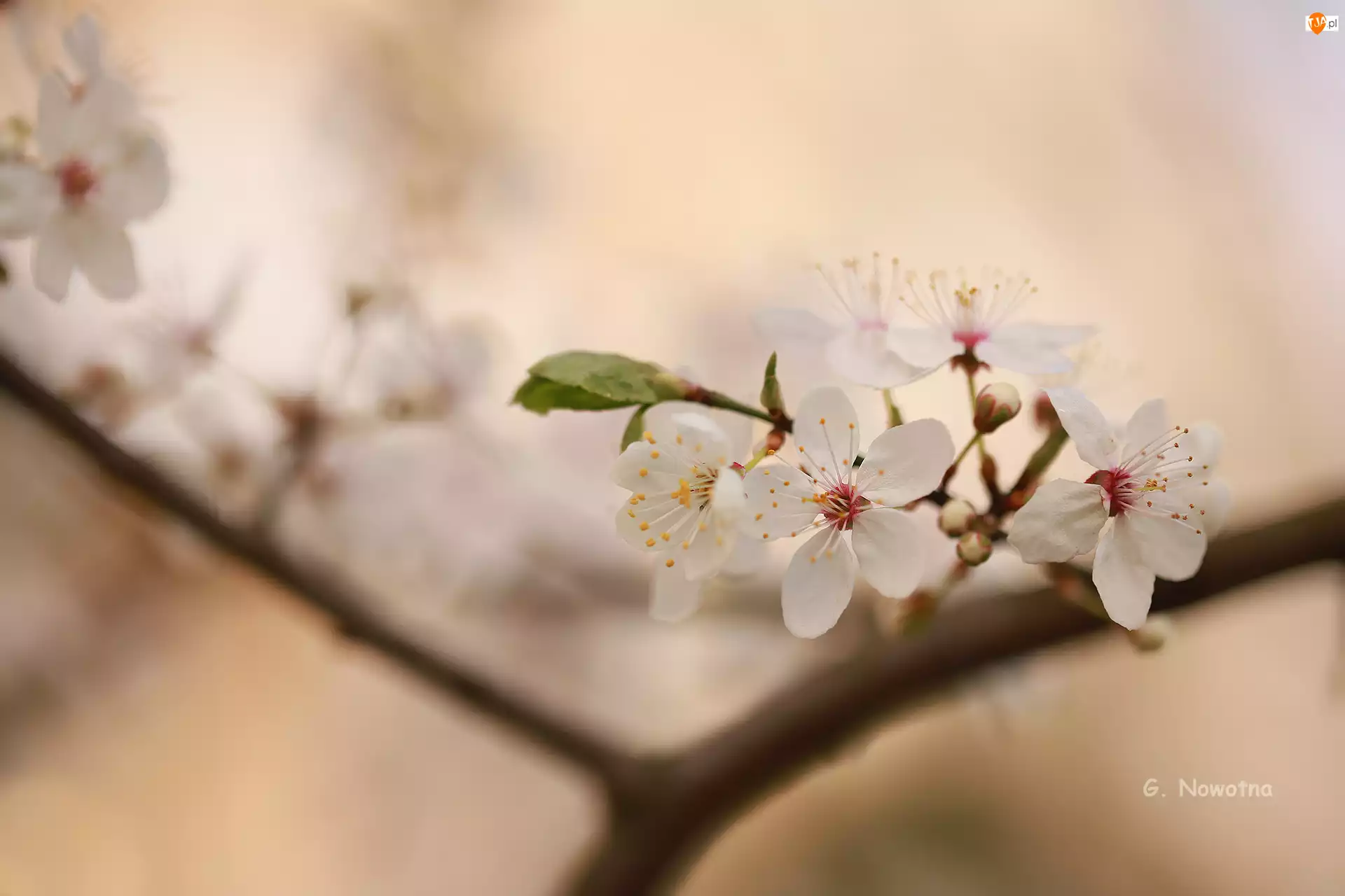 Zielone, Drzewo owocowe, Kwiaty, Białe, Listki