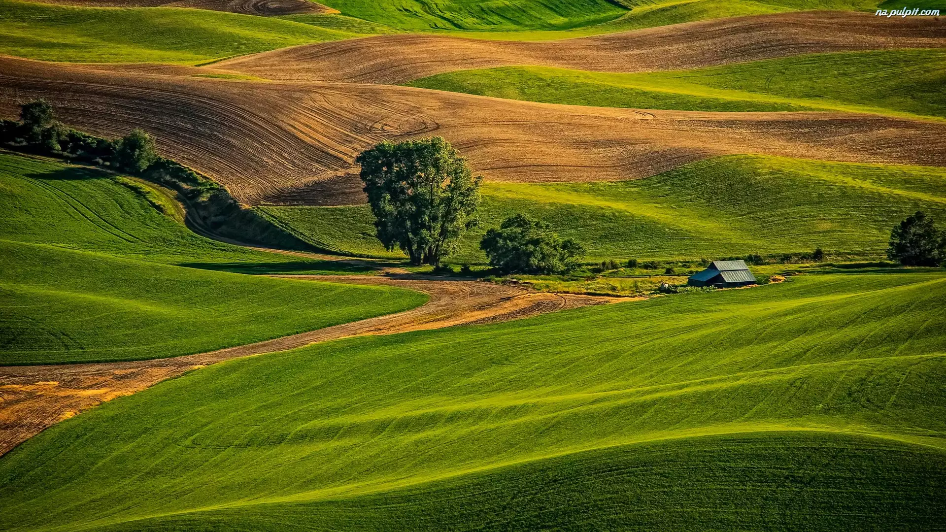 Łąki, Drzewa, Stany Zjednoczone, Pola, Waszyngton, Palouse, Wzgórza