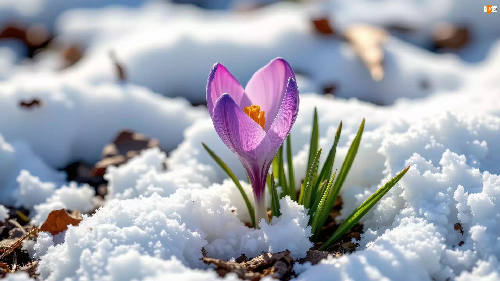Zielone, Śnieg, Krokus, Fioletowy, Listki