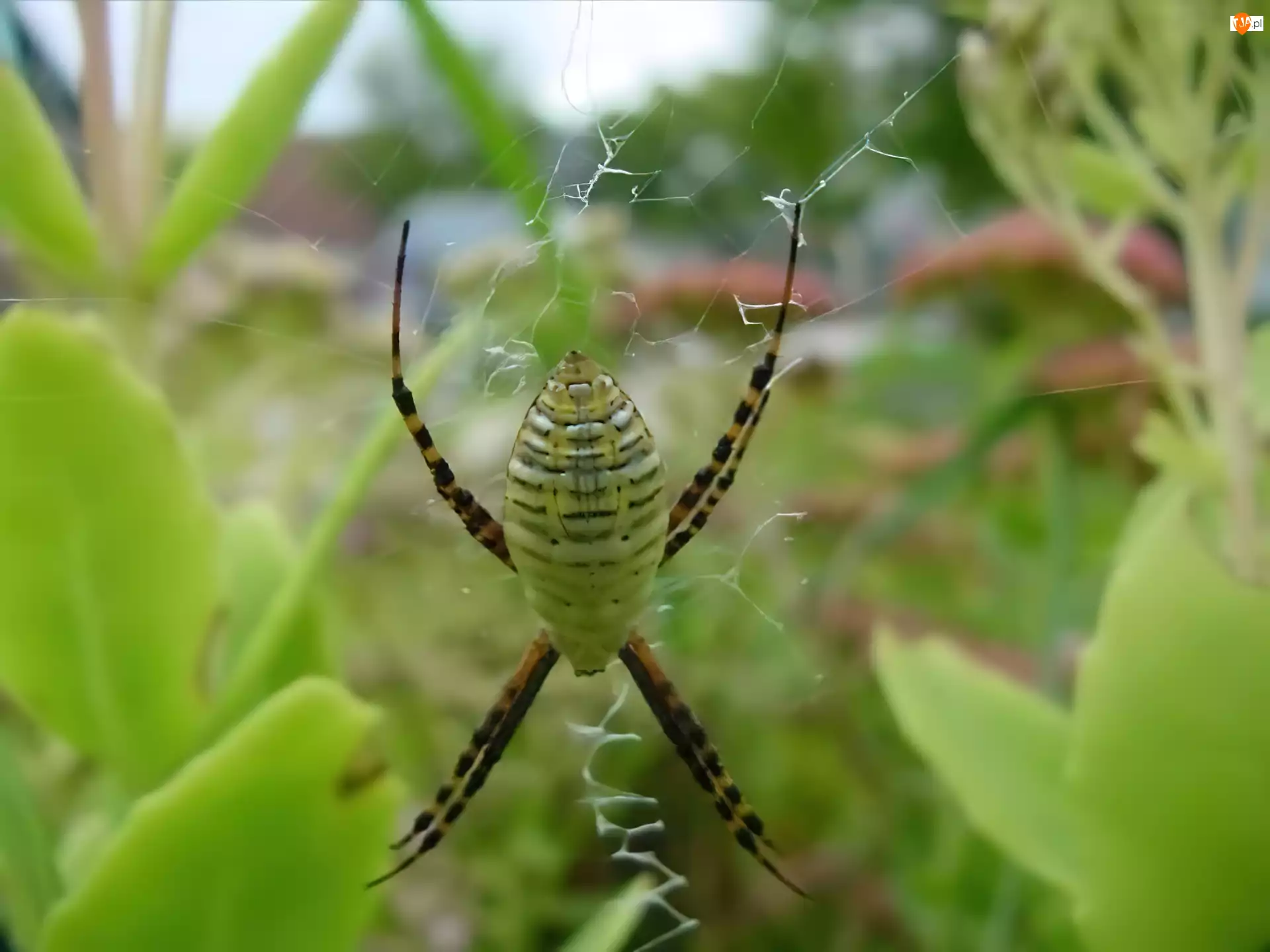 Zielony, Liście, Pająk, Sieć