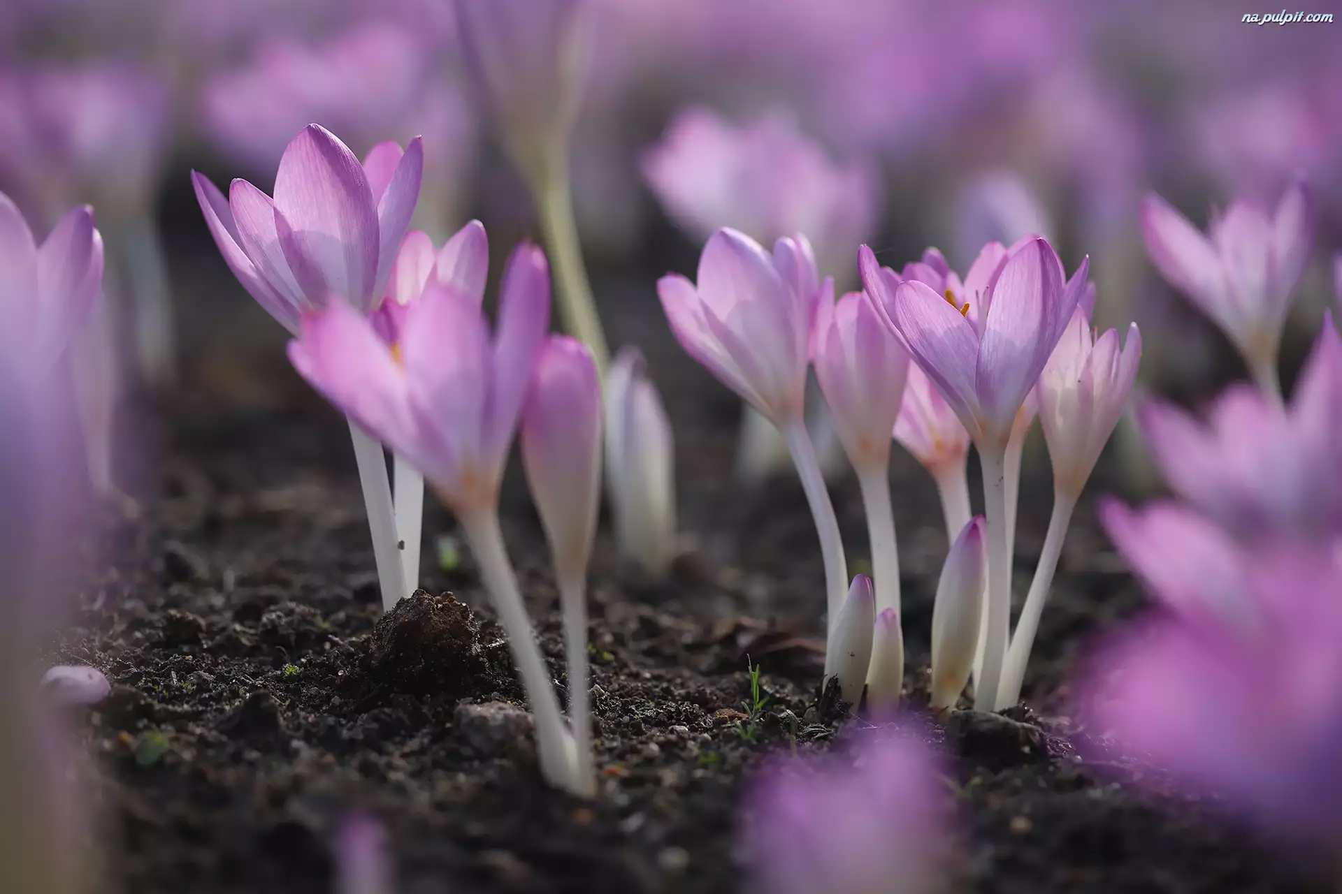 Ziemia, Zimowity, Fioletowe, Kwiaty
