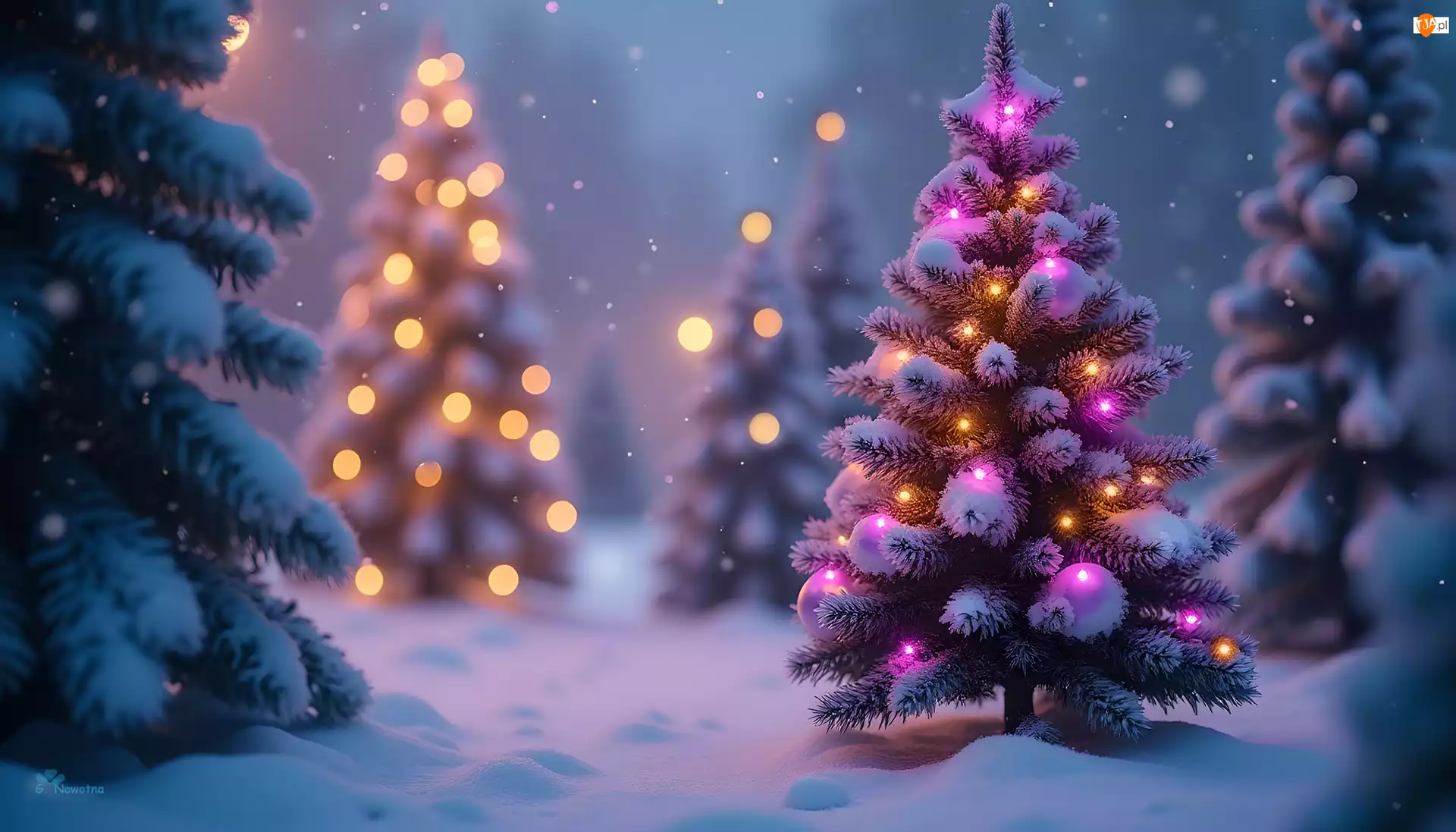 Zima, Boże Narodzenie, Śnieg, Choinki, Grafika