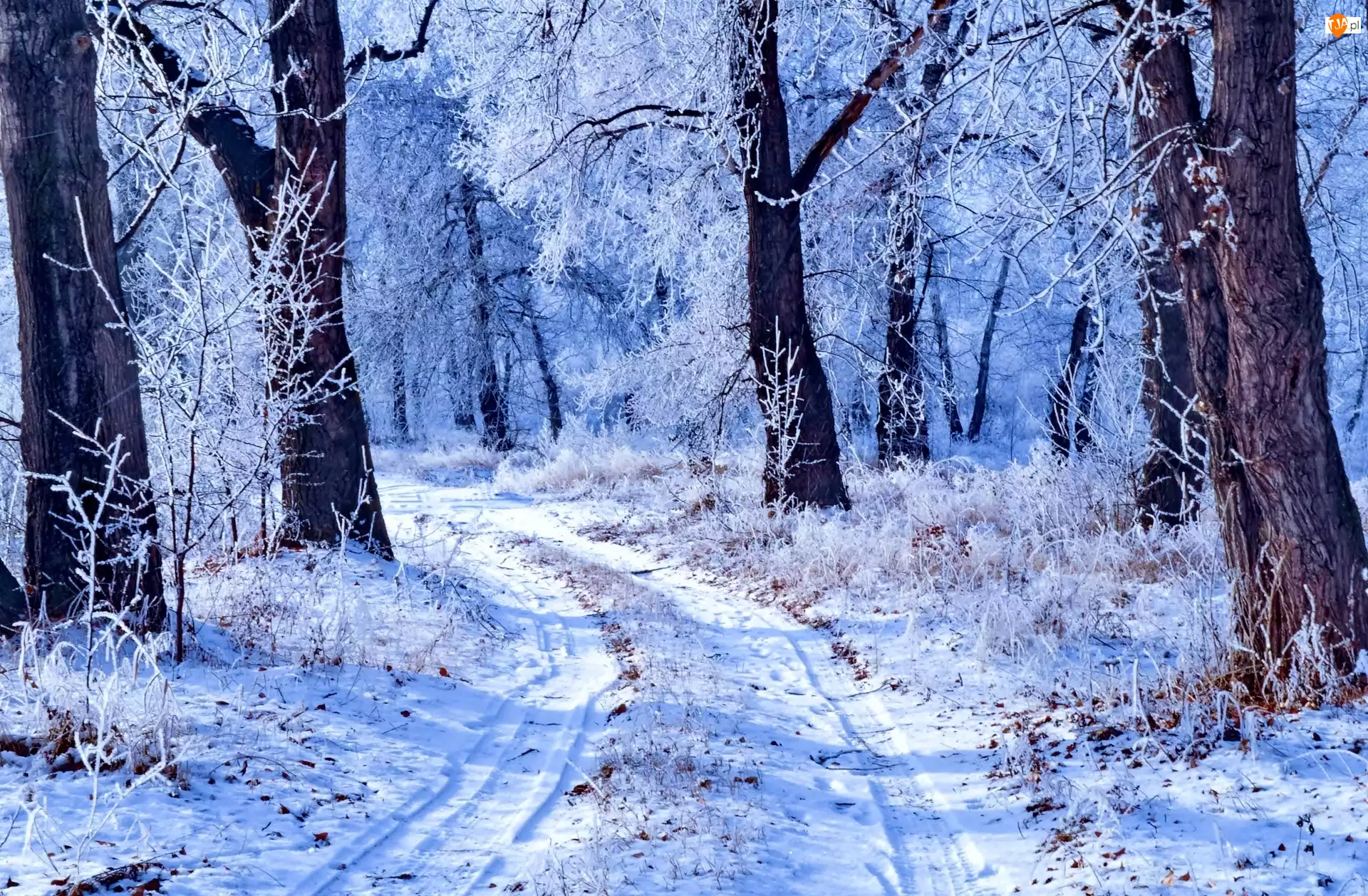 Zima, Droga, Ośnieżone, Las, Drzewa