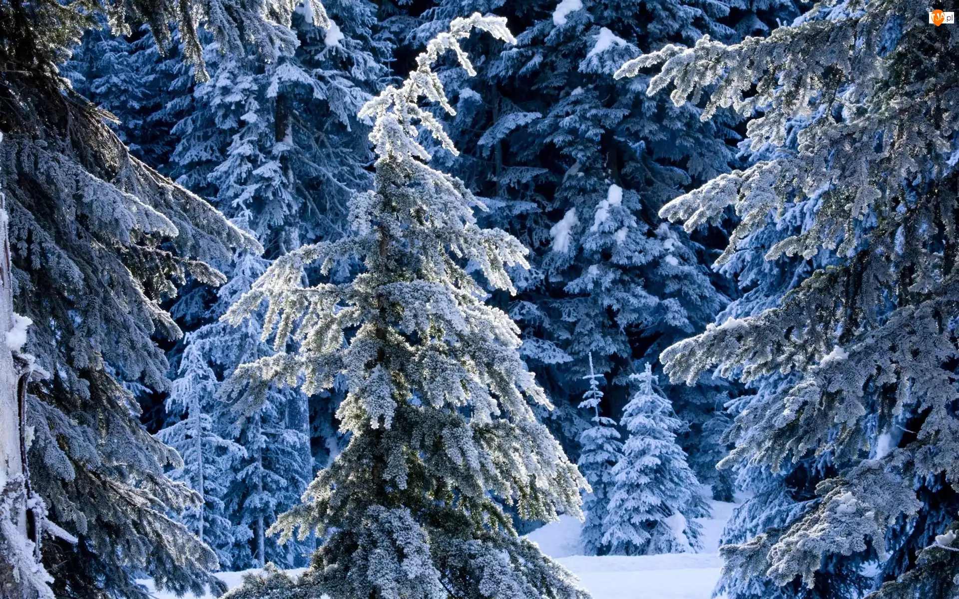 Zima, Drzewa, Las, Ośnieżone