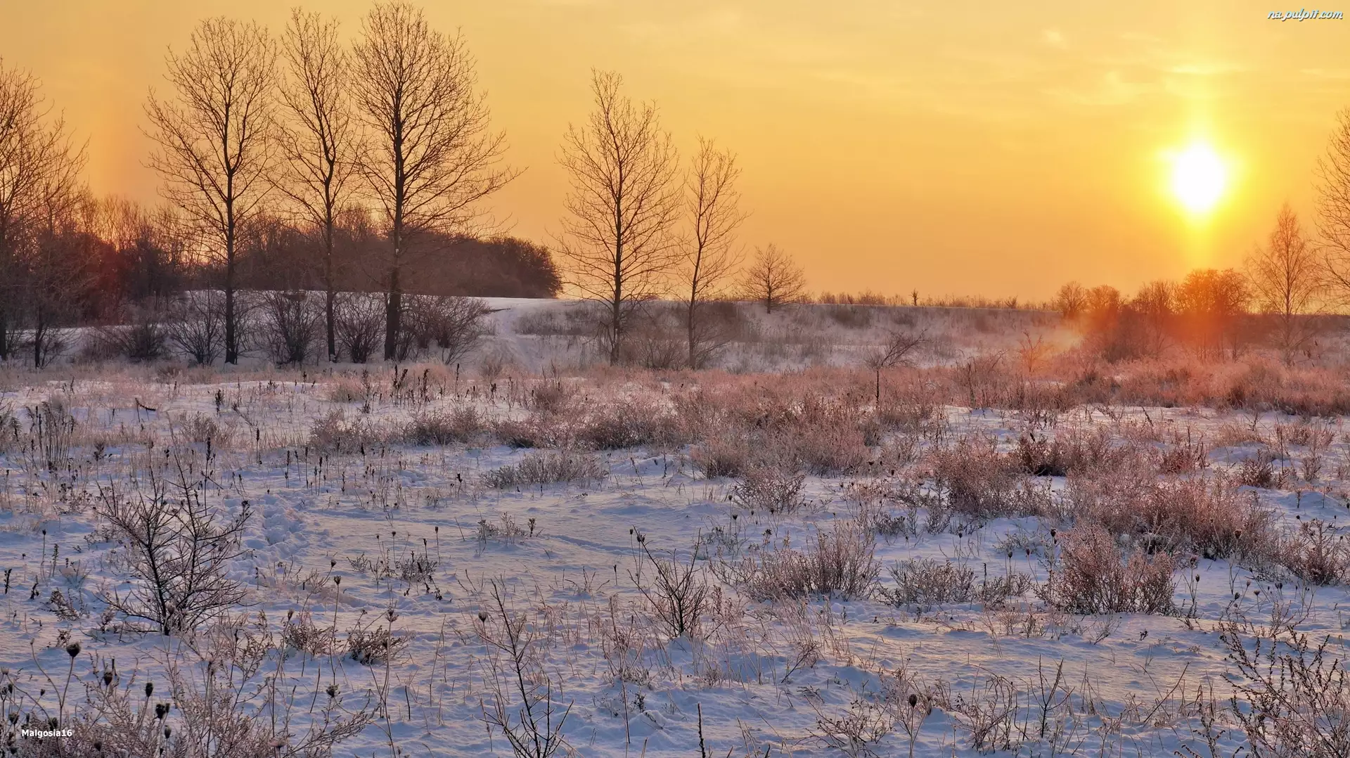 Zima, Drzewa, Wschód Słońca, Śnieg