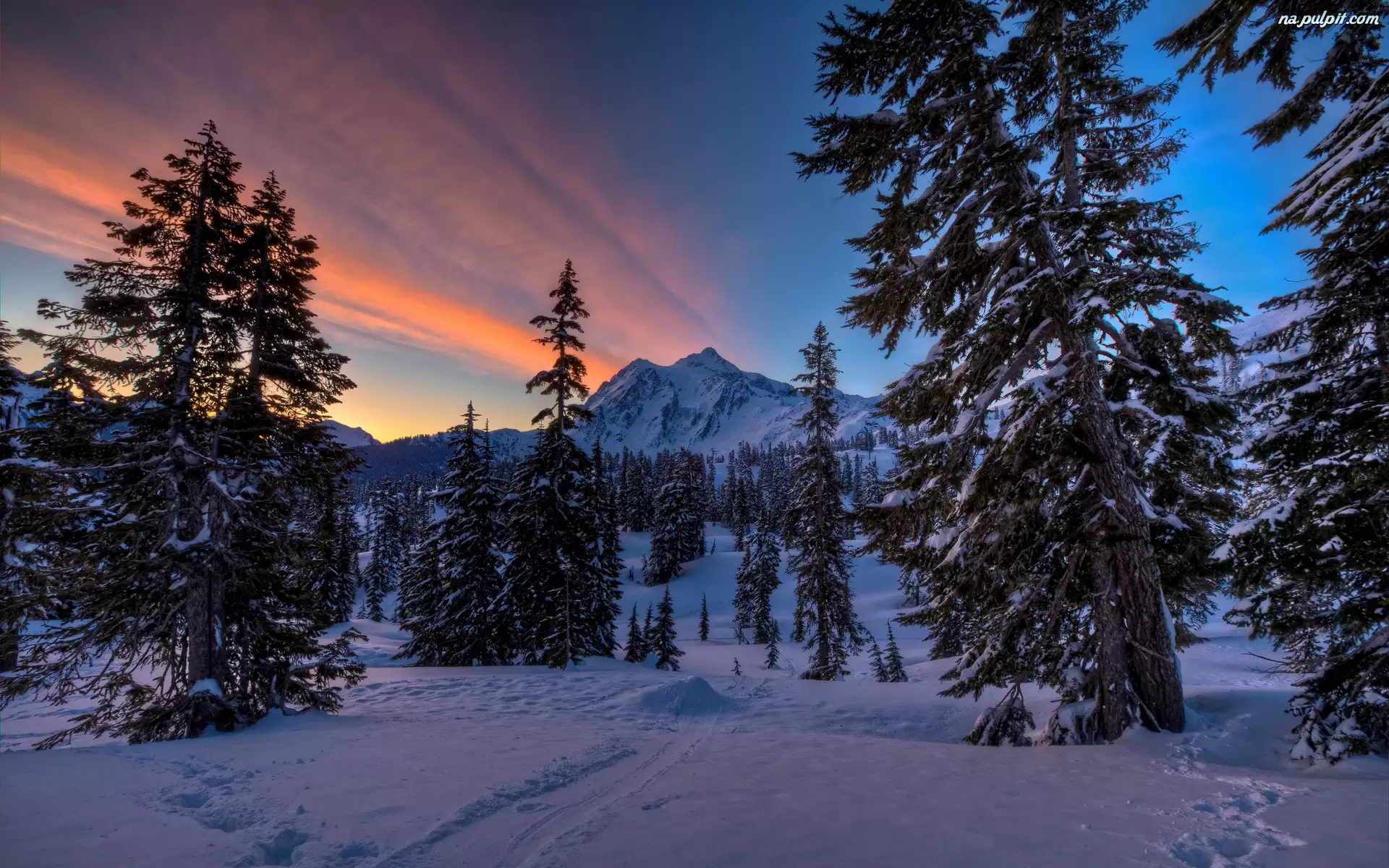 Zima, Góry, Chmury, Lasy, Ścieżka