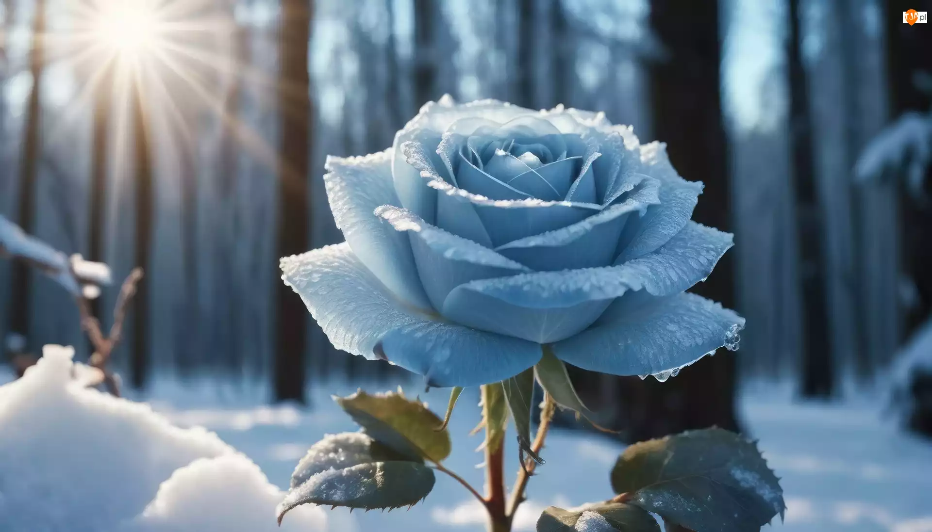 Zima, Grafika AI, Szron, Róża, Promienie słońca