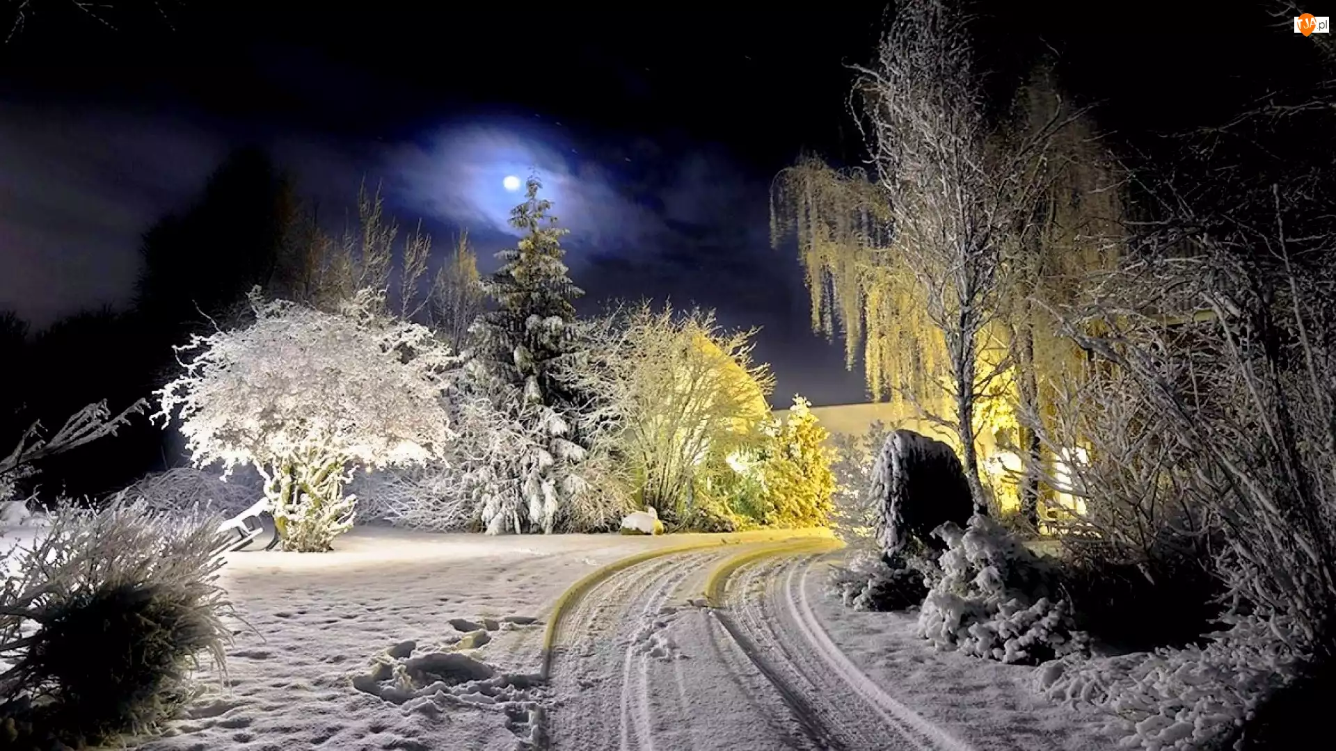 Zima, Księżyc, Las, Droga