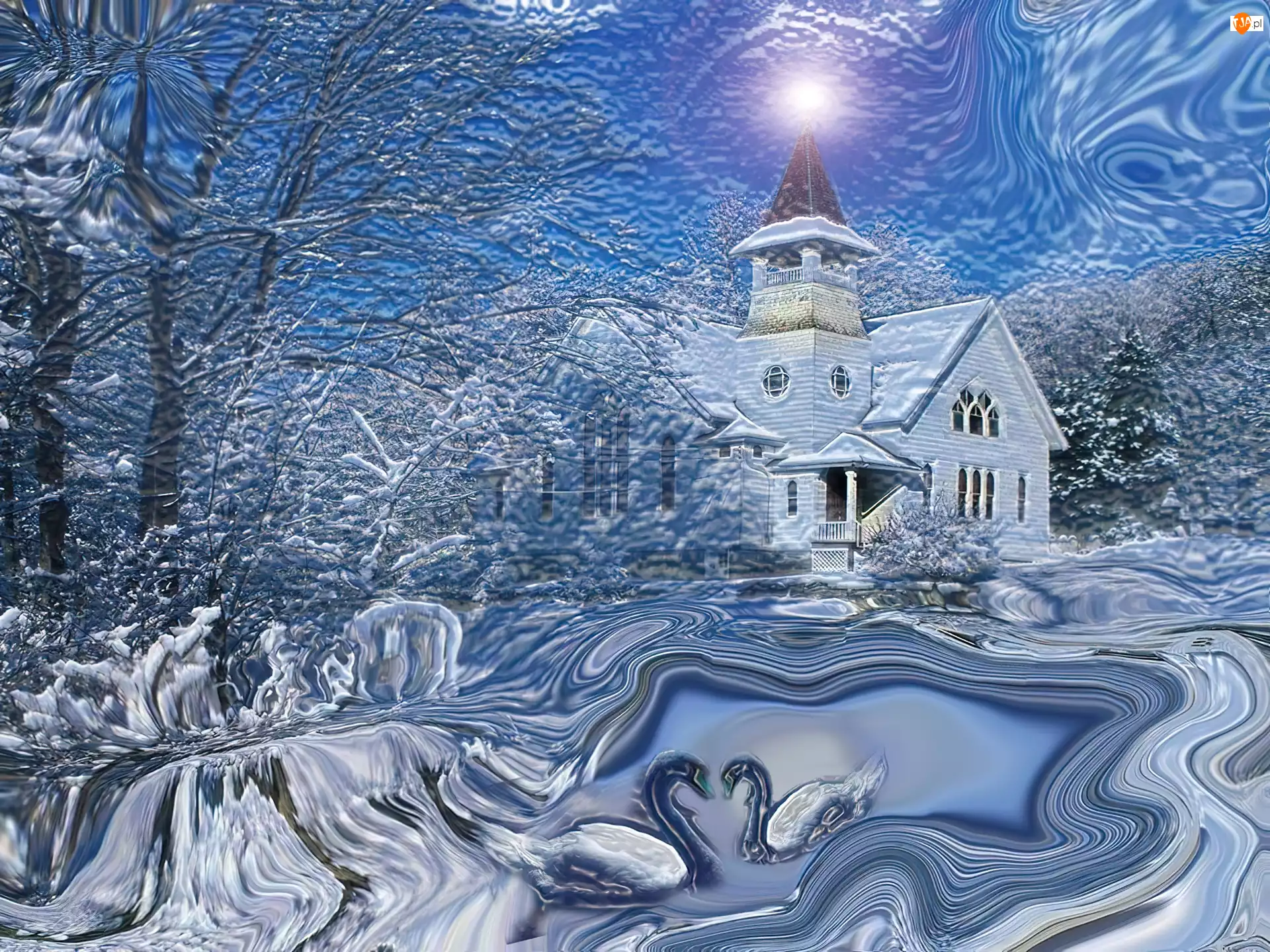 Zima, łabędzie