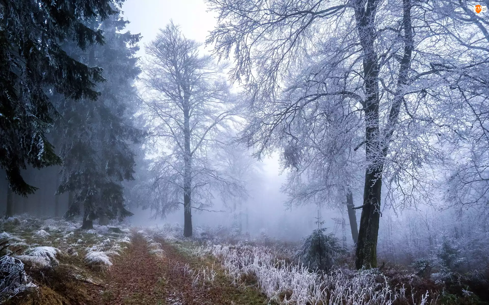 Zima, Las, Ośnieżone, Droga, Drzewa