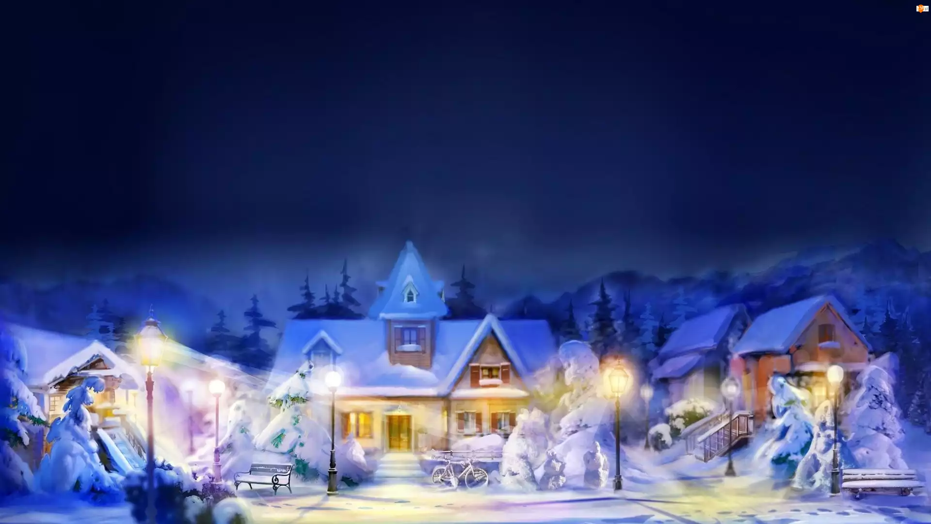 Zima, Noc, Domy, Rower