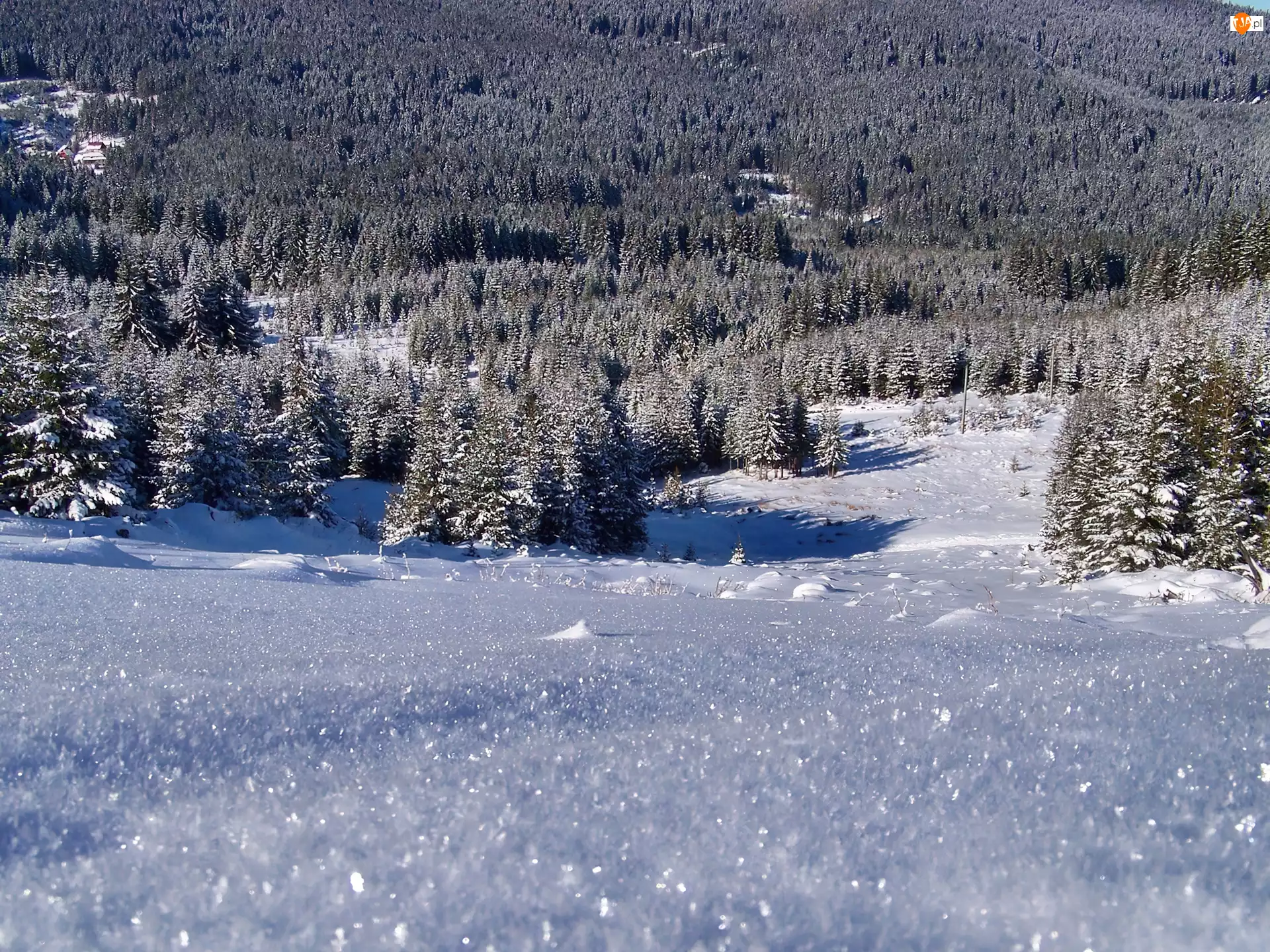 Zima, Polana, Las, Ośnieżona