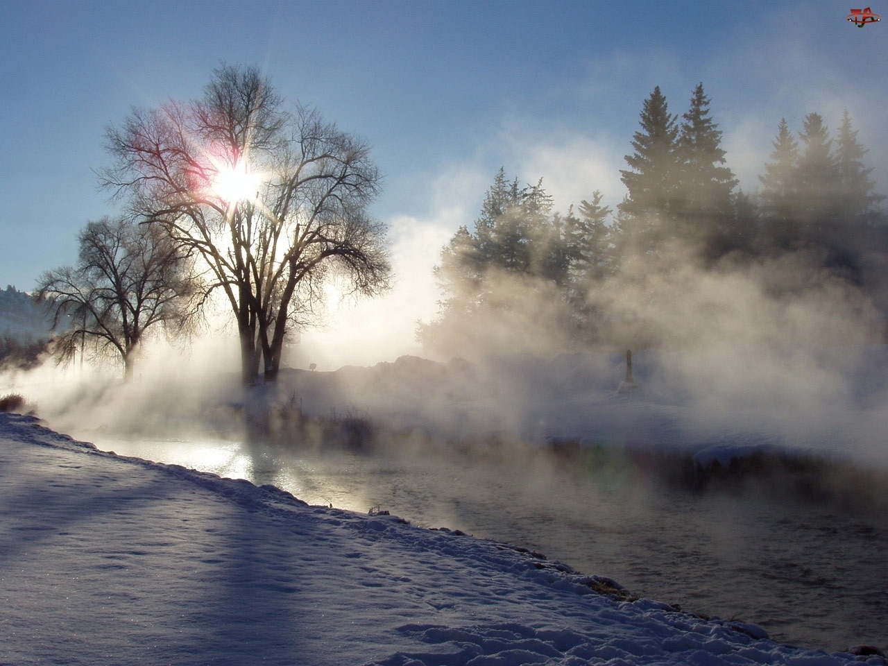 Zima, Słońca, Śnieg, Wschód