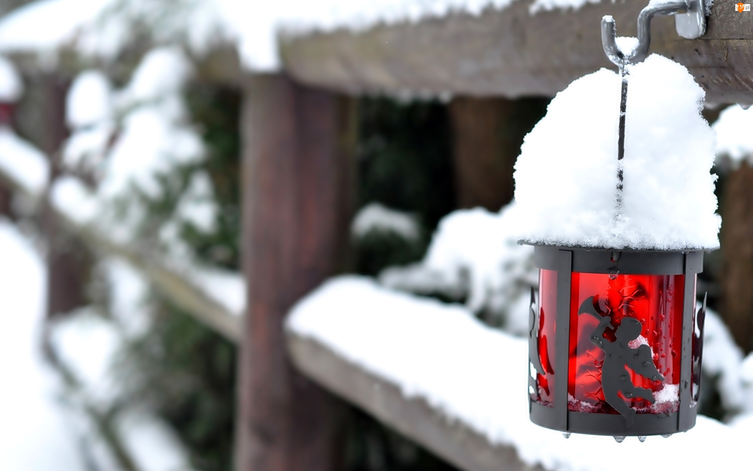 Dekoracja, Lampion, Ogrodzenie, Śnieg