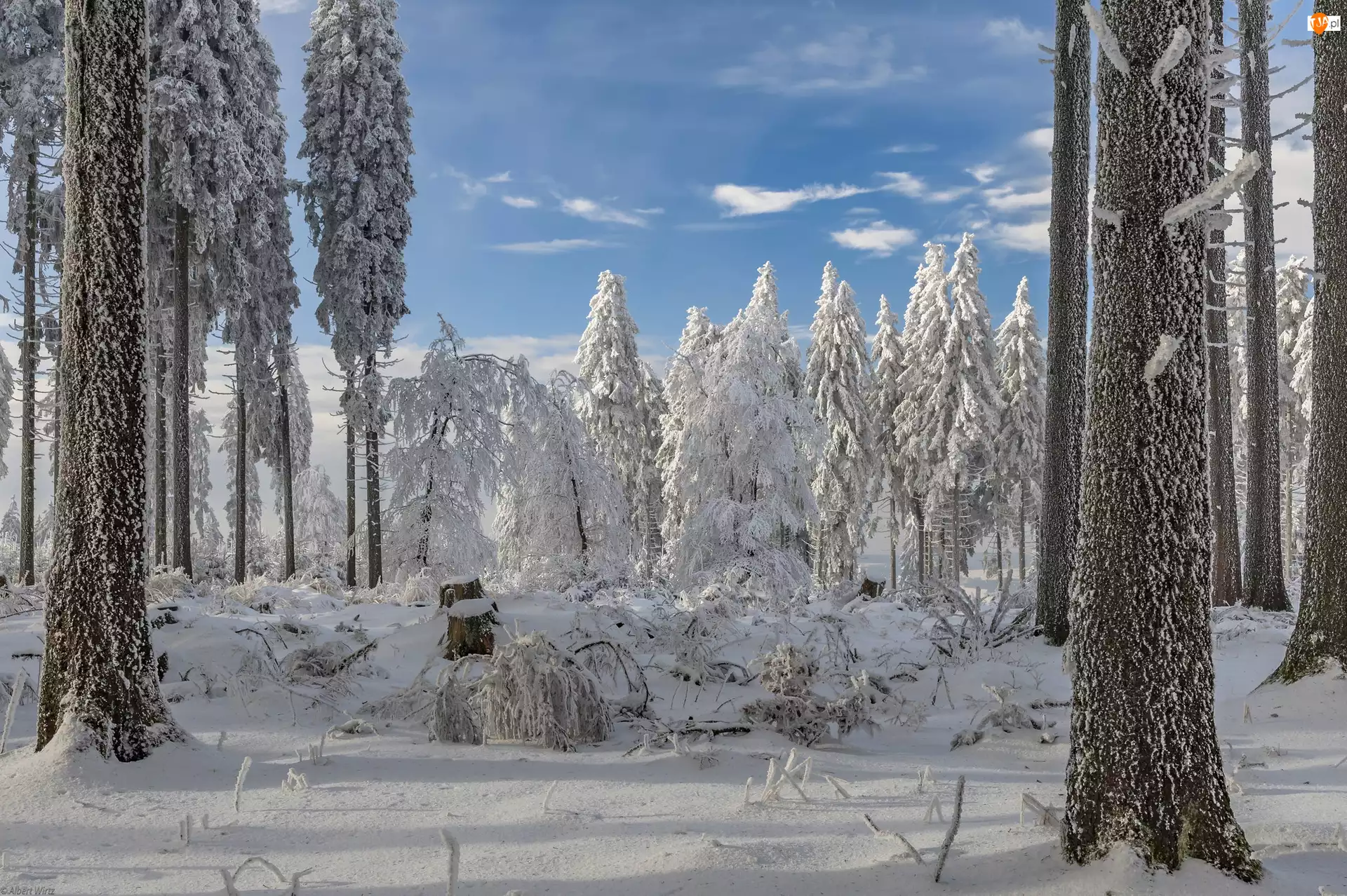 Szczyt Erbeskopf, Zima, Nadrenia-Palatynat, Szron, Niemcy, Drzewa, Pasmo Hunsrück, Las