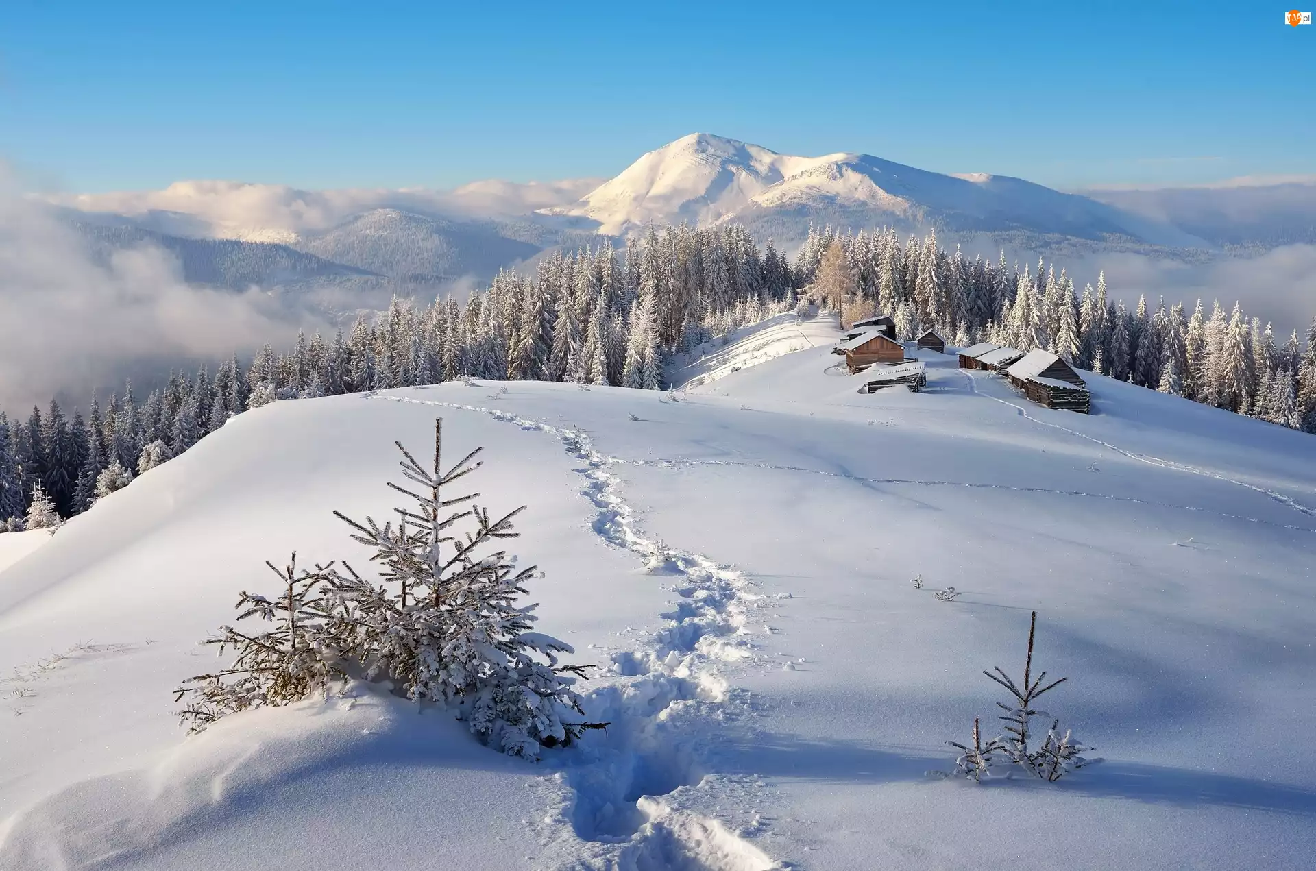 Święta, Choinka, Śnieg, Ozdoby, Zima