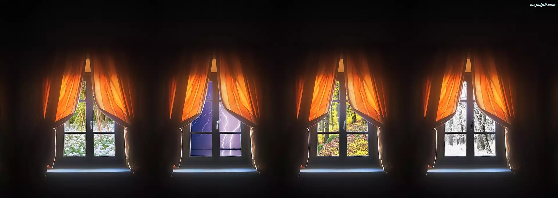 Okna, Wiosna, Zima, Grafika, Lato, Wnętrze, Komputerowa, Jesień