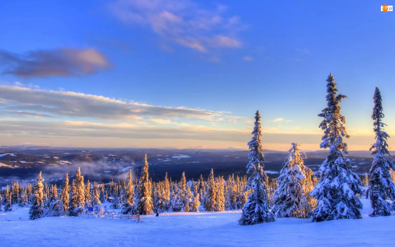Tagi: Zima Zachód Świerki Słońca Śnieg