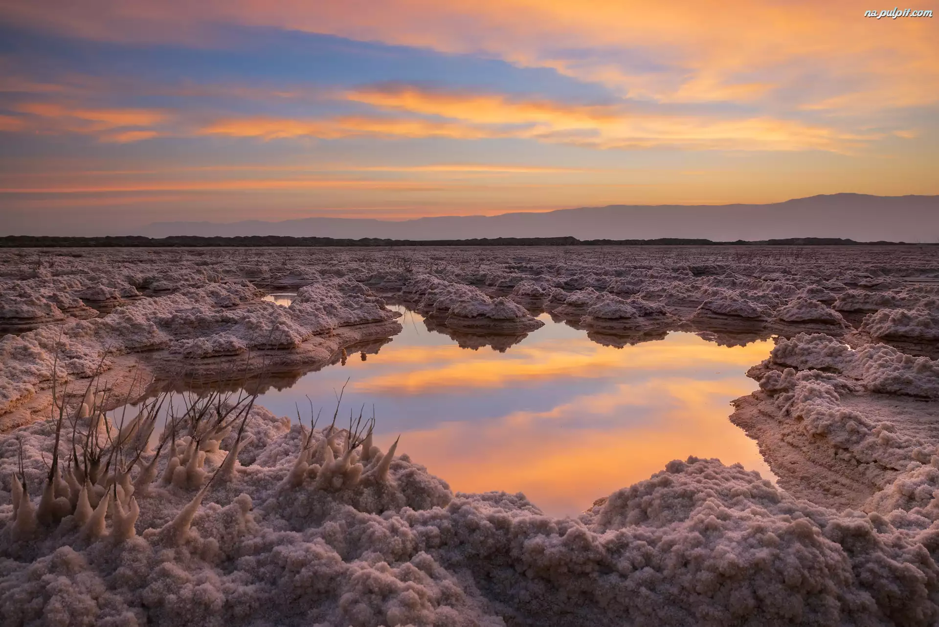 Chmury, Morze Martwe, Jezioro, Odbicie, Formacje, Rośliny, Izrael, Solne