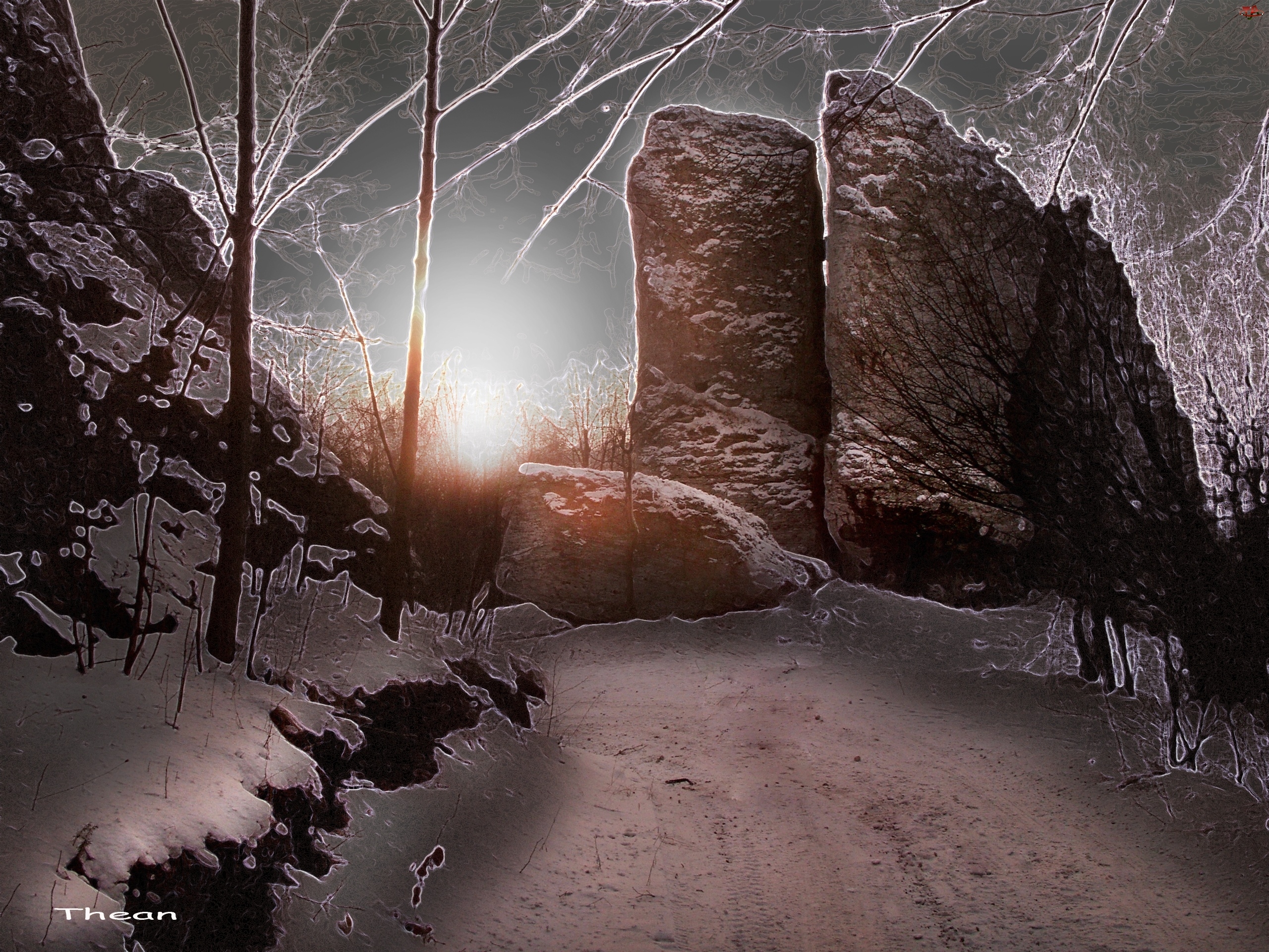 Zimowy, Śnieg, Widok, Skały