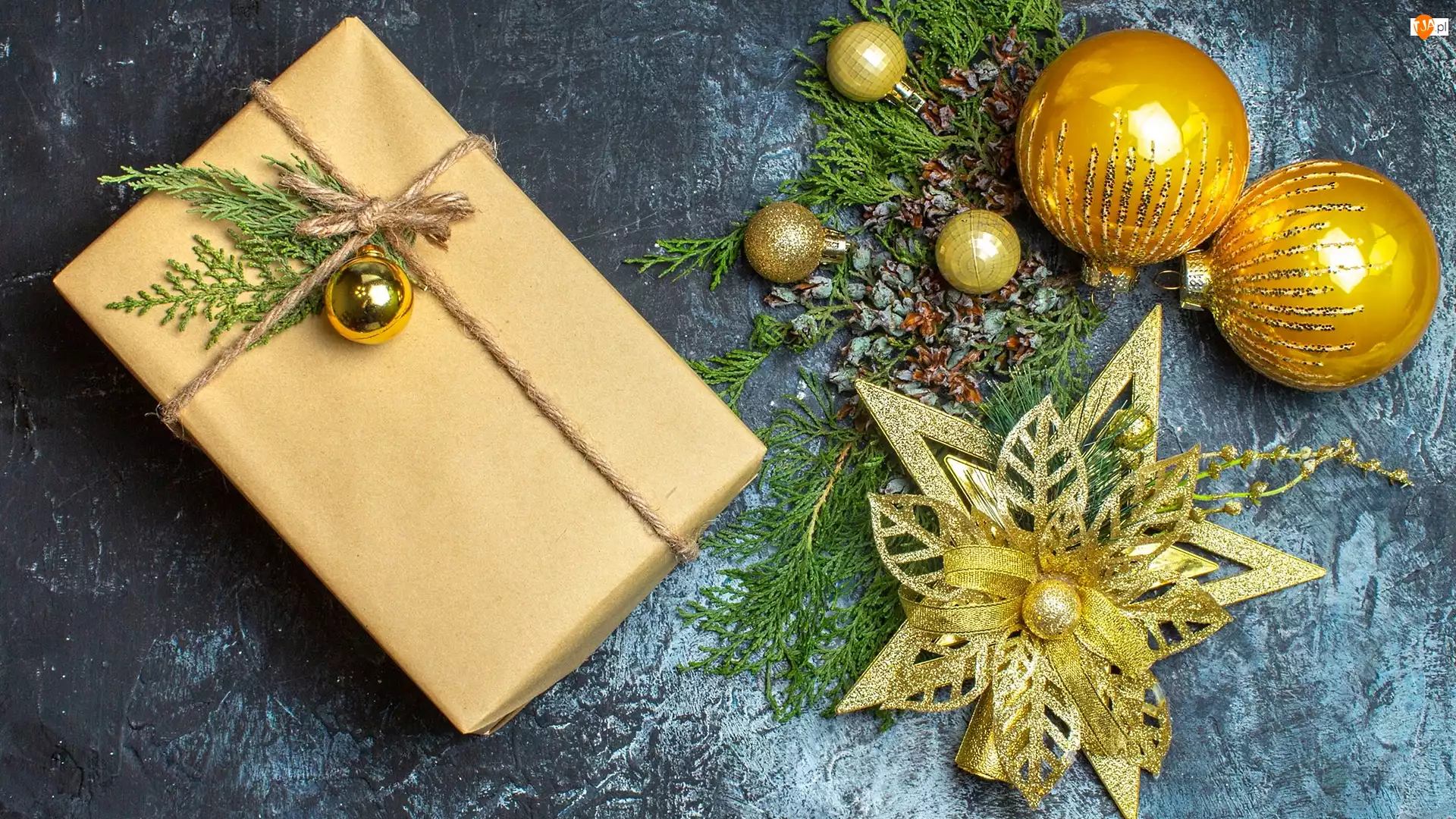 Bombki, Boże Narodzenie, Gwiazda, Prezent, Gałązki
